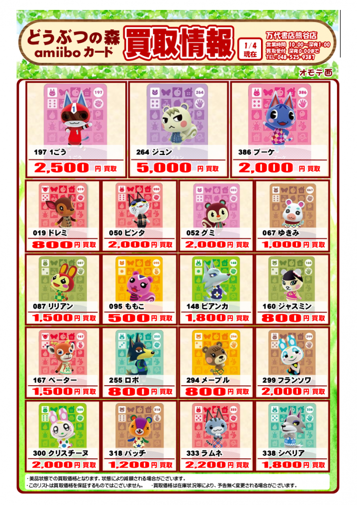 どうぶつの森アミーボカードの買取告知更新しました! 皆様からの買取じゃんじゃんお待ちしております(∩´∀`)∩ ※2021/1/4現在の買取価格となります。 在庫状況・状態によってお値段が変動いたします。予…