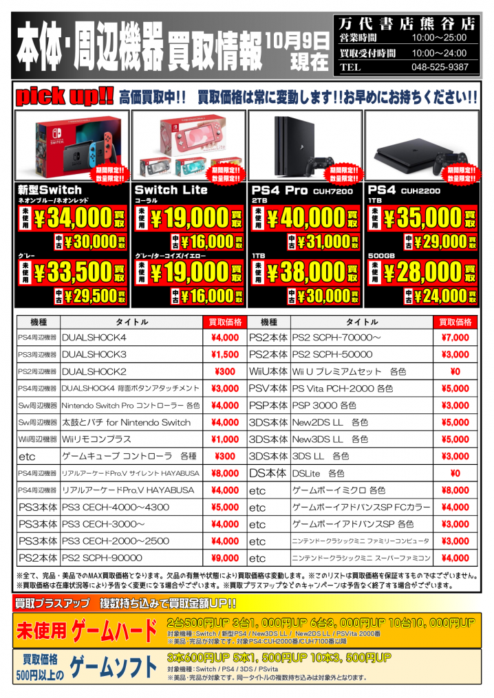 【ゲーム】10/19★ゲームハードの買取告知更新しました!★