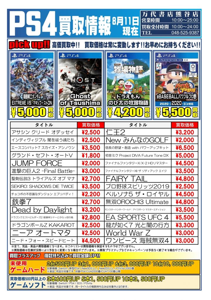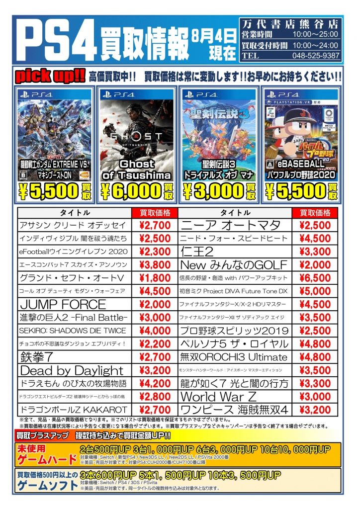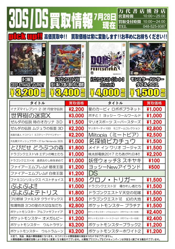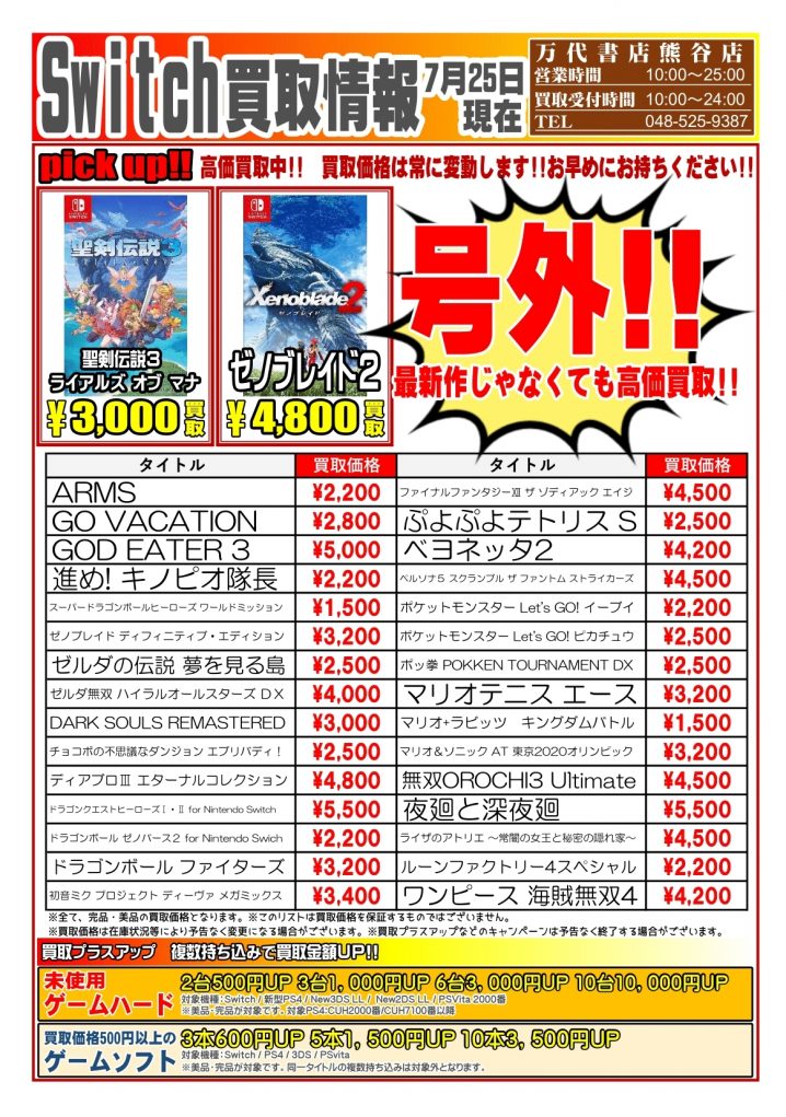 ゲームコーナー買取告知更新しました°˖✧◝(⁰▿⁰)◜✧˖° 掲載外商品も買取大募集中です! 皆様からの買取じゃんじゃんお待ちしております(∩´∀`)∩ ※2020/7/29現在の買取価格となります。 在庫…
