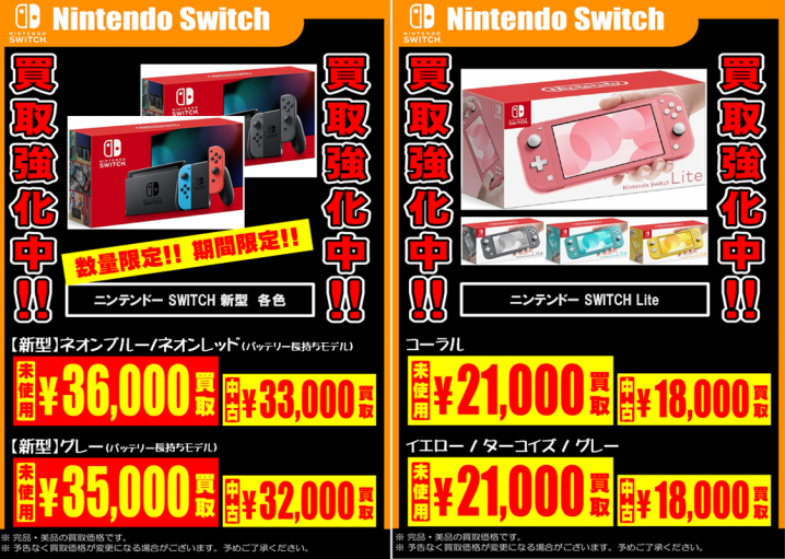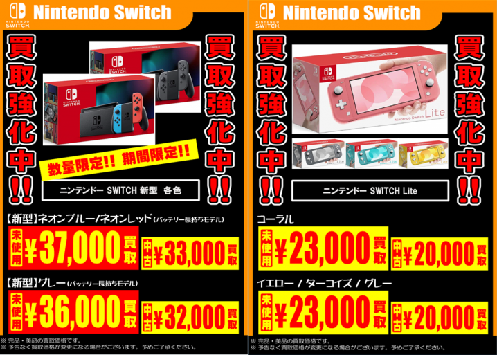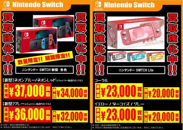 ニンテンドーSwitch、PS4ハードの買取告知更新しました! 掲載外商品も買取大募集中です! 皆様からの買取じゃんじゃんお待ちしております(∩´∀`)∩ ※2020/7/10現在の買取価格となります。 在…