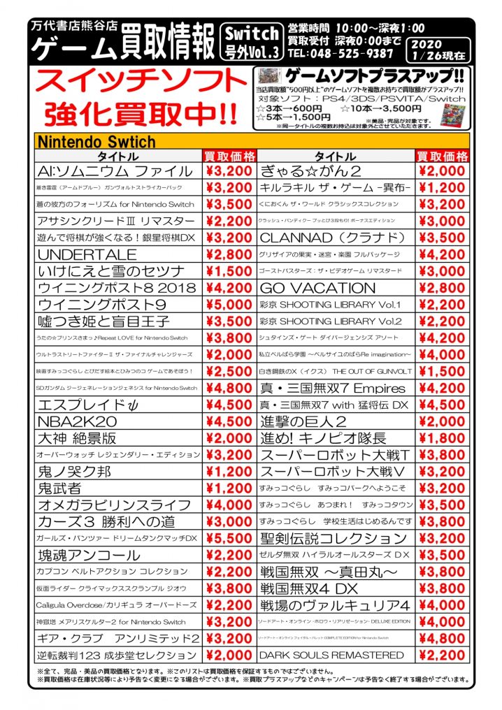 ニンテンドーSwitchソフトの買取告知更新しました°˖✧◝(⁰▿⁰)◜✧˖° ※1/26現在の買取価格となっております。 掲載外商品も買取大募集中です! 皆様からの買取じゃんじゃんお待ちして…