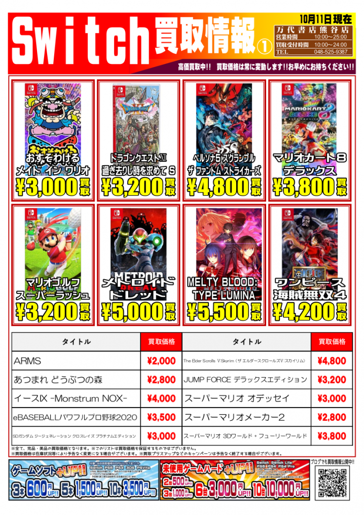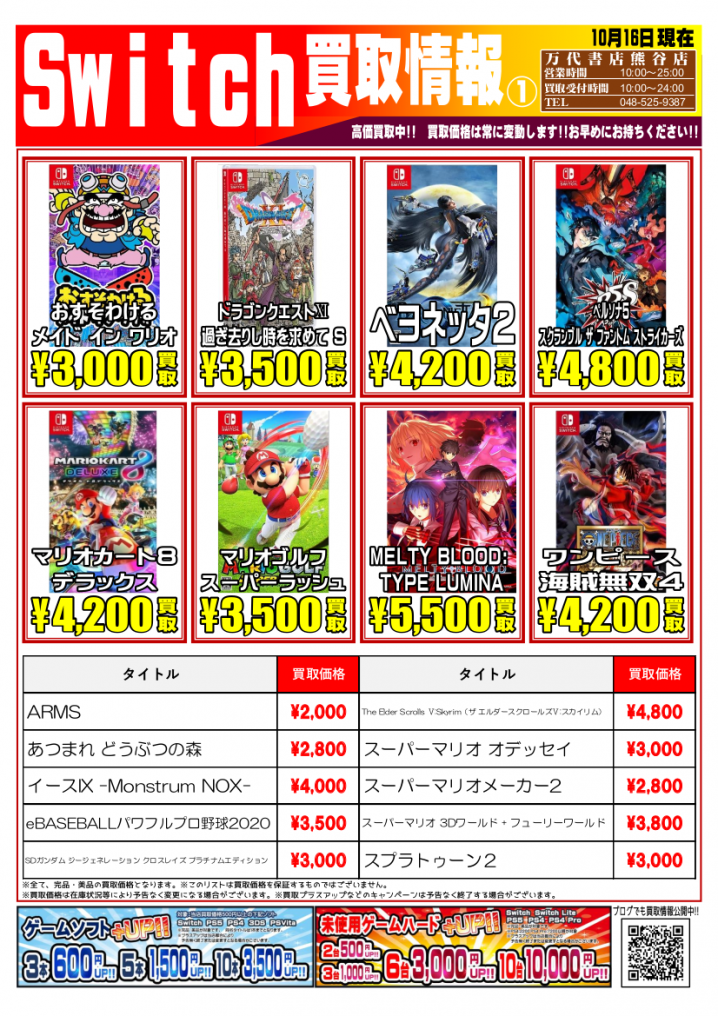 ⭐WEBチラシ更新しました!!⭐ ※2021/10/11 現在の買取価格となります。 在庫状況・状態によってお値段が変動いたします。予めご了承ください。 *************** こちら…