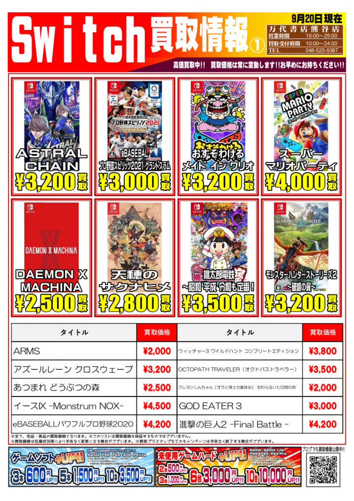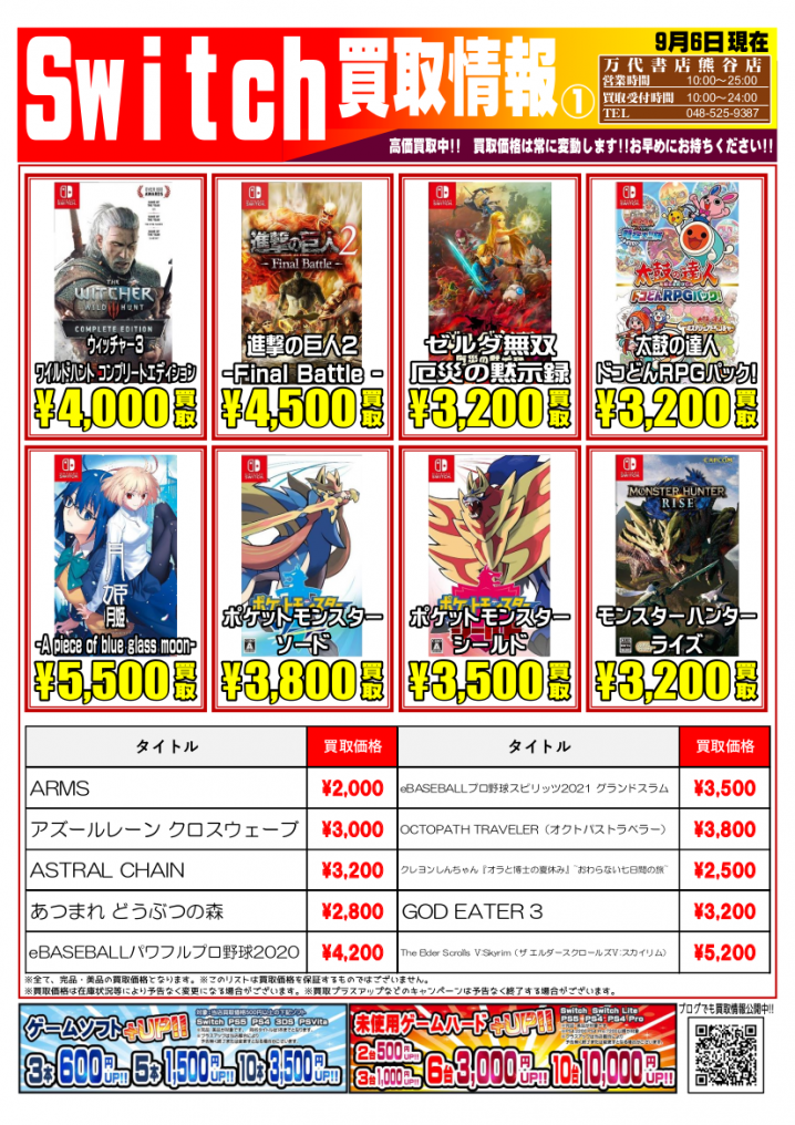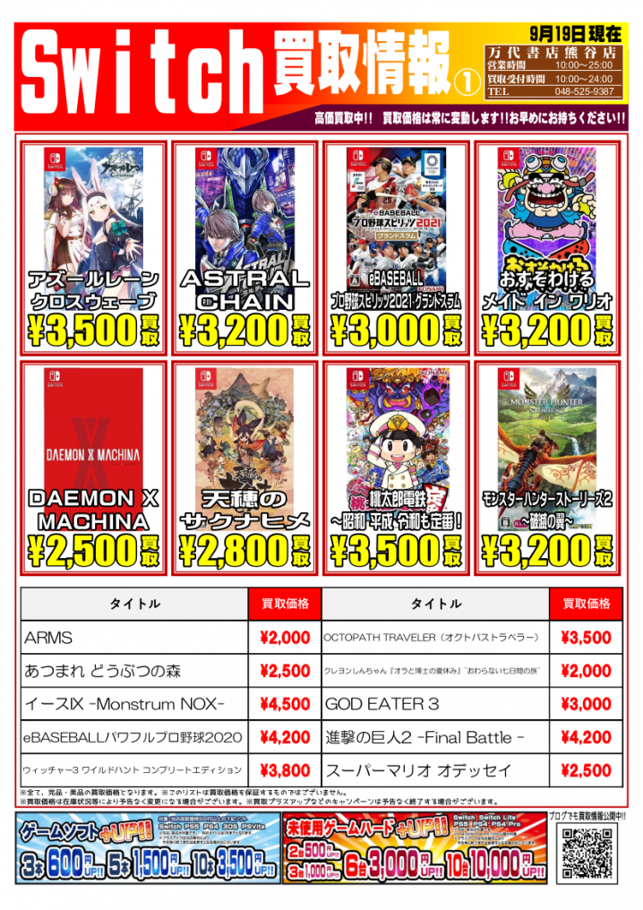 ⭐WEBチラシ更新しました!!⭐ ※2021/9/19 現在の買取価格となります。 在庫状況・状態によってお値段が変動いたします。予めご了承ください。 *************** こちら↓…