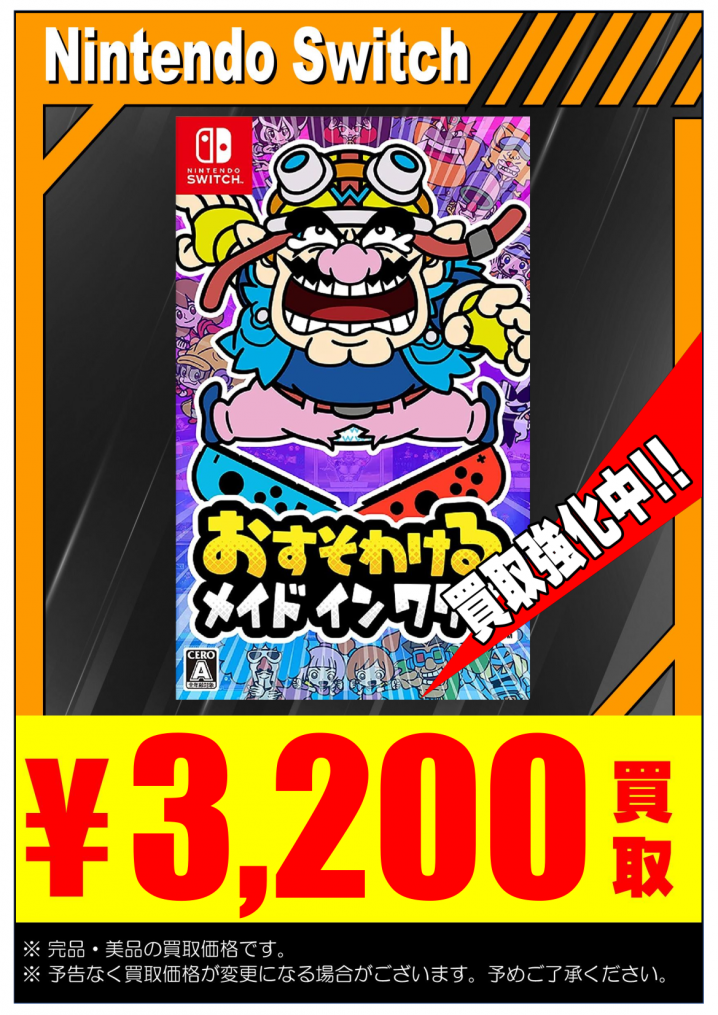 ★ゲームソフト買取告知★ おすそわけるメイドインワリオ 買取強化中! 是非当店買取へお売り下さい(*´▽`*) ※2021/9/12 現在の買取価格となります。 在庫状況・状態によってお値段が…