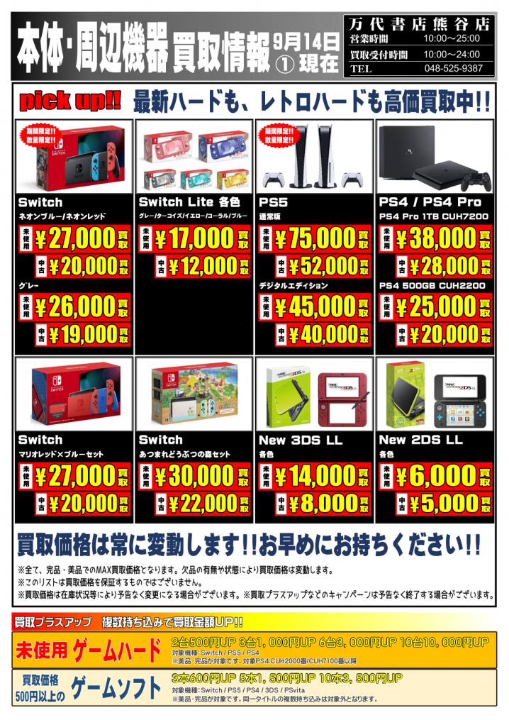 ⭐WEBチラシ更新しました!!⭐ ※2021/9/14 現在の買取価格となります。 在庫状況・状態によってお値段が変動いたします。予めご了承ください。 *************** こちら↓…