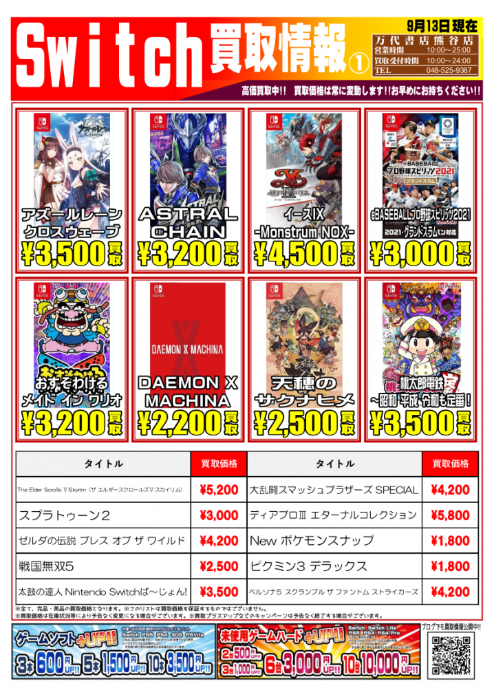 ⭐WEBチラシ更新しました!!⭐ ※2021/9/13 現在の買取価格となります。 在庫状況・状態によってお値段が変動いたします。予めご了承ください。 *************** こちら↓…