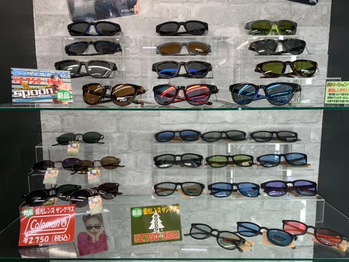 偏光レンズサングラス大量入荷しました! 全て税込¥2,750とお求め易い商品なのでこの機会に是非! ご来店お待ちしております!