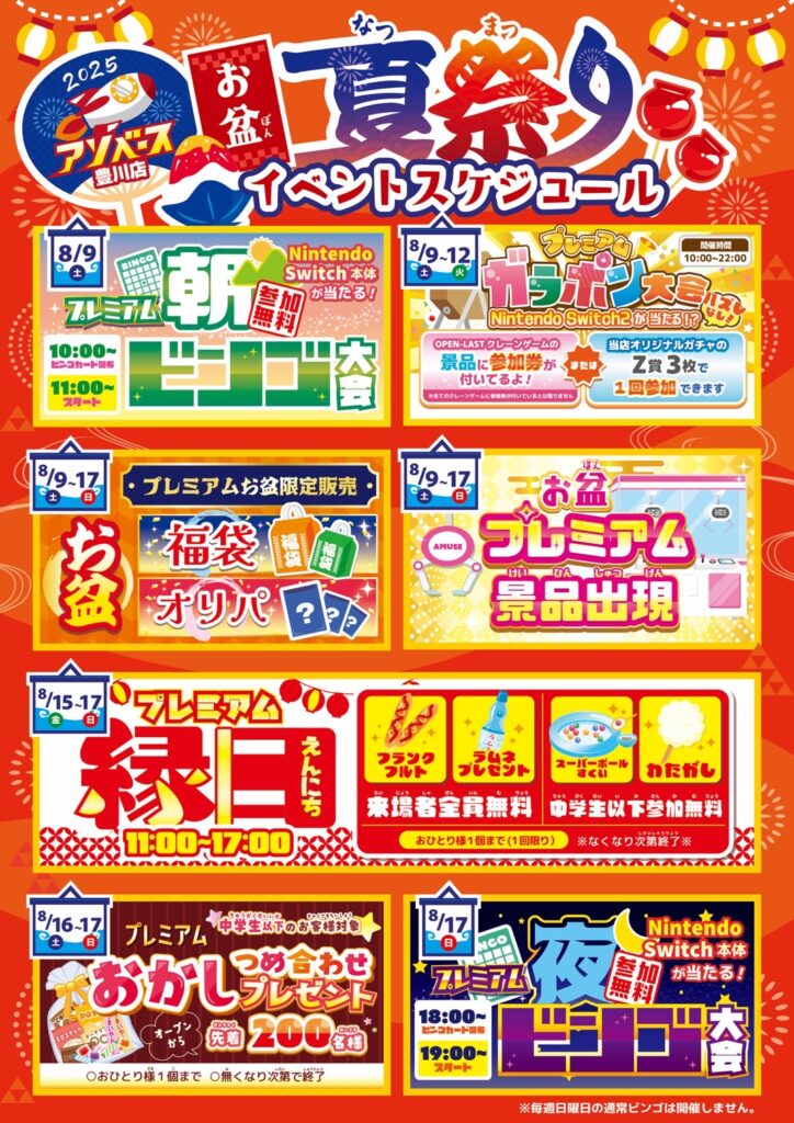 お盆だよ!アソベースのプレミアムな夏祭りイベント情報! 9日開催プレ…