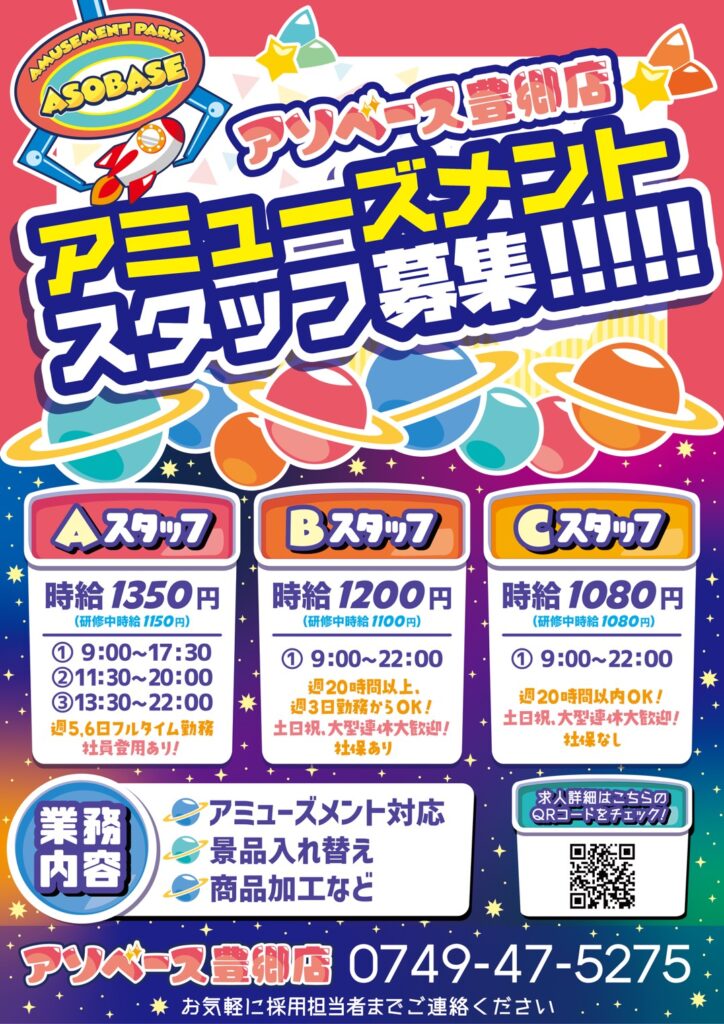 時給アップしました! スタッフ募集中!