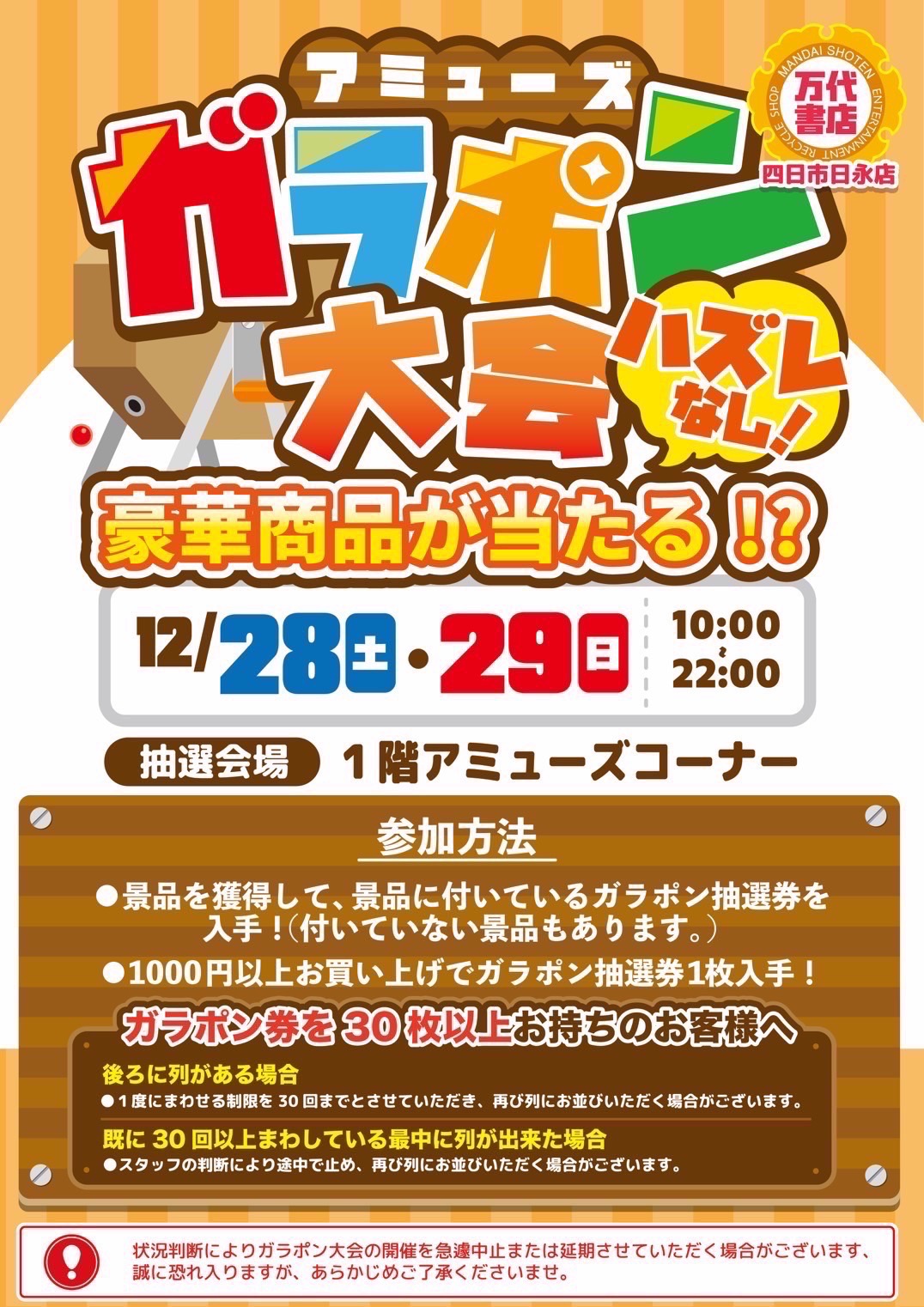 豪華景品があたる⁉️みんな大好きガラポン大会開催いたします🌞
