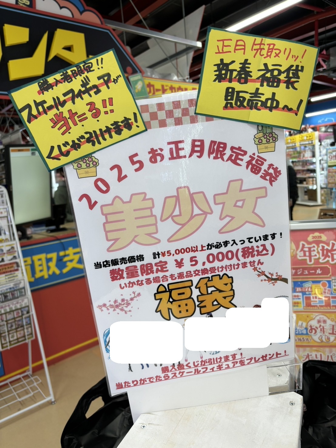 【アソベース豊川店】ちょっと早いけど‼️‼️ お正月限定‼️美少女福袋💟 ✨️✨️販売開始〜✨️✨️ アソベース豊川店 豊川店 おもちゃ 2024年12月28日 ちょっと早いけど‼️‼️ お正月限定‼️美少女福袋💟 ✨️✨️販売開始〜✨️✨️ 💰数量限定 ¥5,000💰 当店販売額¥5,000以上確定‼️🔥 熱過ぎ〜🔥🔥🔥 更に‼️‼️‼️ 購入して頂いた方は スケールフィギュアが 当たるクジが引けちゃいます‼️😜 ちょっと早いけど福掴んじゃえ〜🫵 当店入口にて販売中‼️ 皆様のご来店お待ちしております‼️