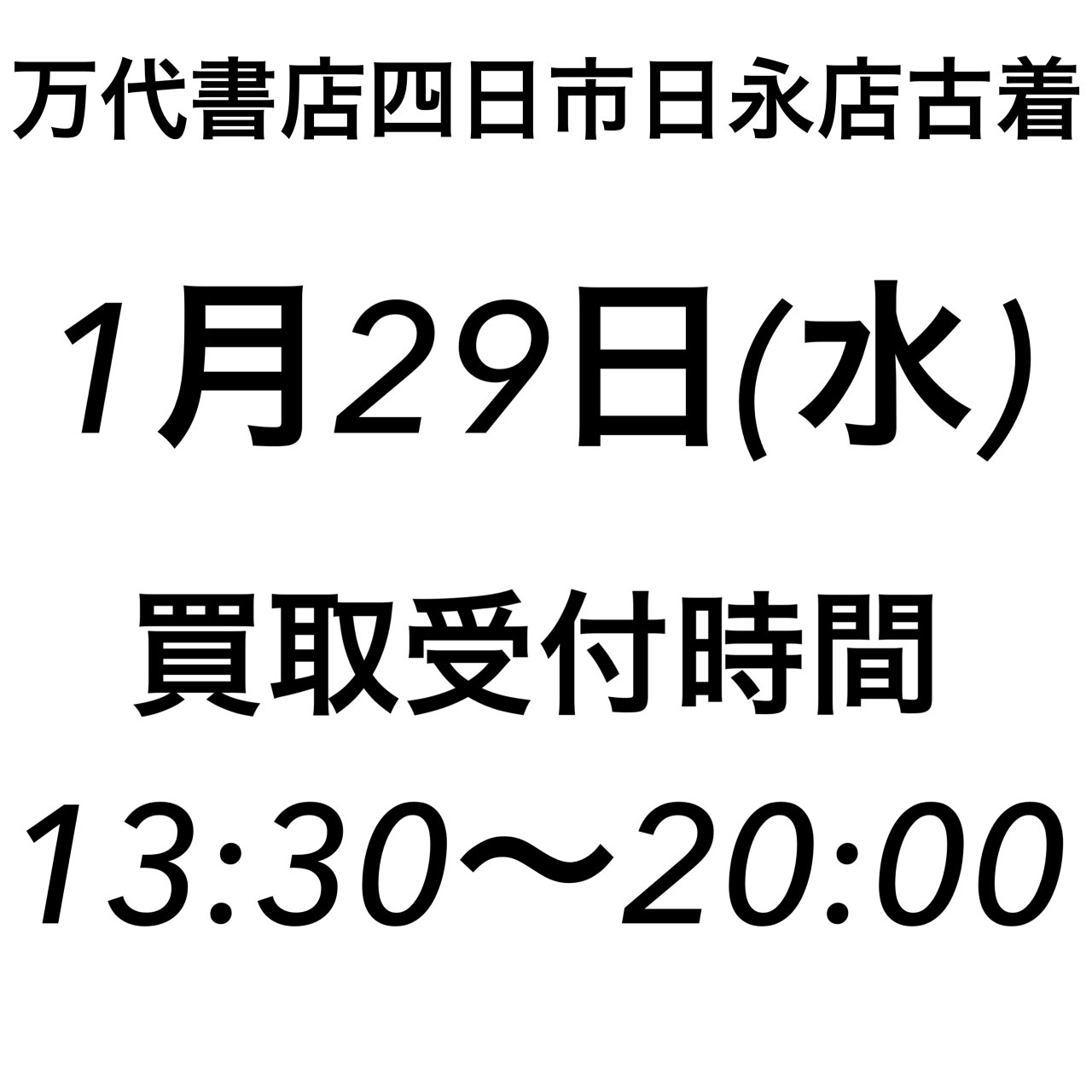 【四日市日永店】*1月29日古着買取受付時間変更のお知らせ* 万代書店四日市日永店 四日市日永店 お知らせ/ご案内 四日市日永店 ファッション 2025年1月28日 万代書店四日市日永店古着スタッフ👕 *買取受付時間変更のお知らせ* 午前中古着スタッフ不在のため 受付開始時間を13:30〜となっております🙇♂️ 急な変更でお客様には申し訳ございませんが よろしくお願い致します🙏