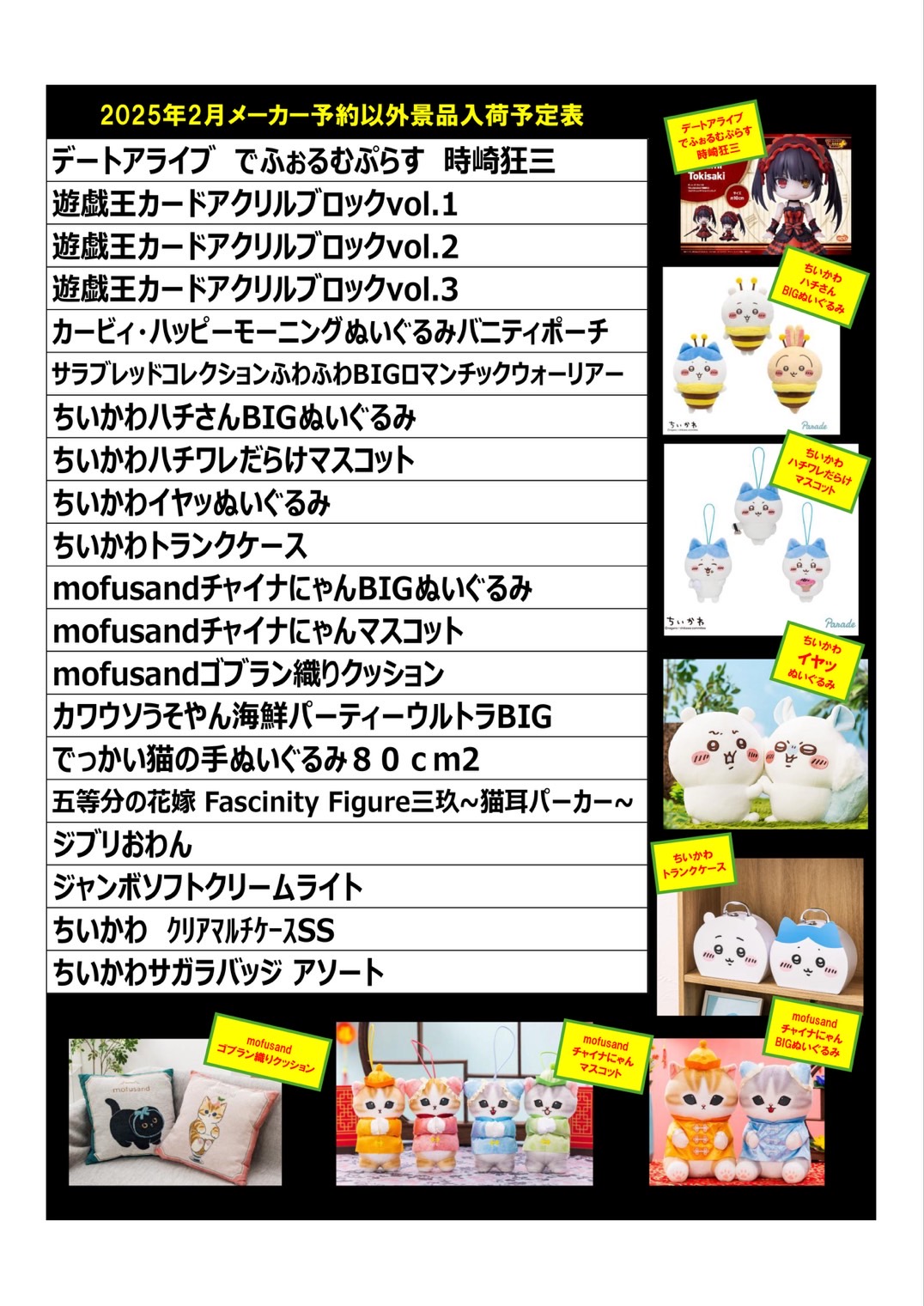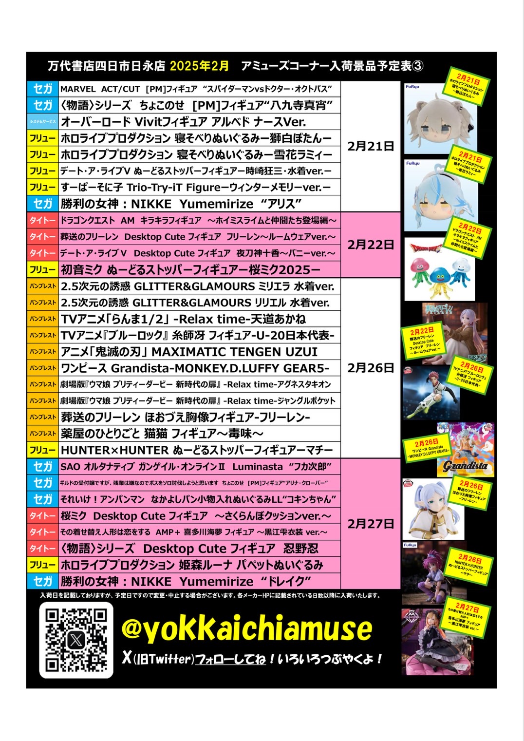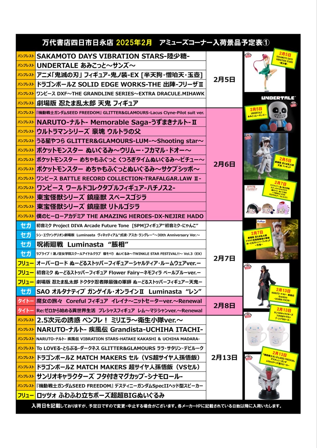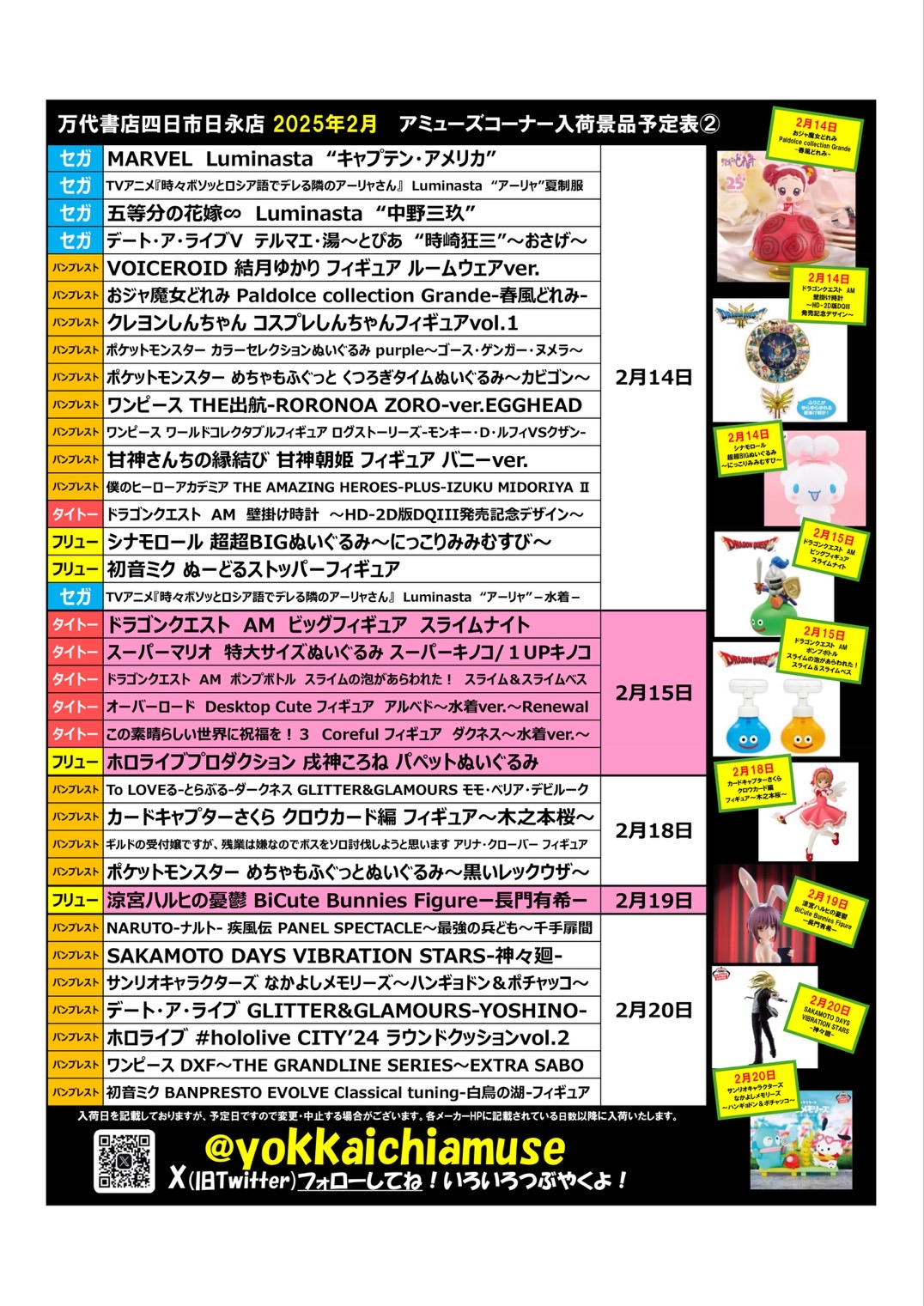 【四日市日永店】アミューズコーナー2月の入荷景品予定表です🙇