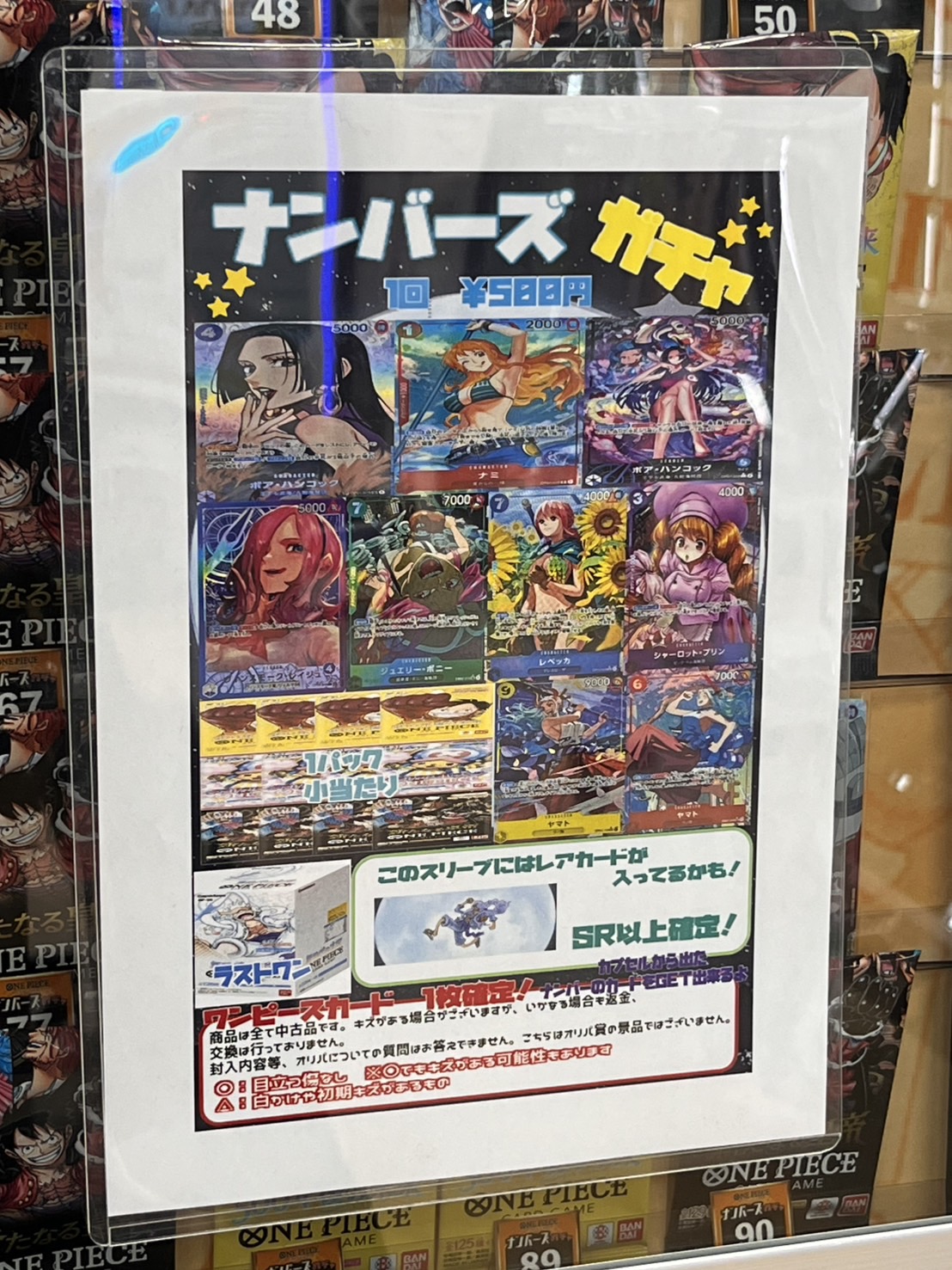 【アソベース豊川店】ワンピースカードゲーム ナンバーズガチャ 補充しました✨️✨️ アソベース豊川店 豊川店 カード 豊川店 ガチャ 2025年2月8日 1回500円 ワンピースナンバーズガチャ補充しました✨️✨️ 今回は人気シングルご用意いたしました! 是非挑戦してみて下さい👏👏