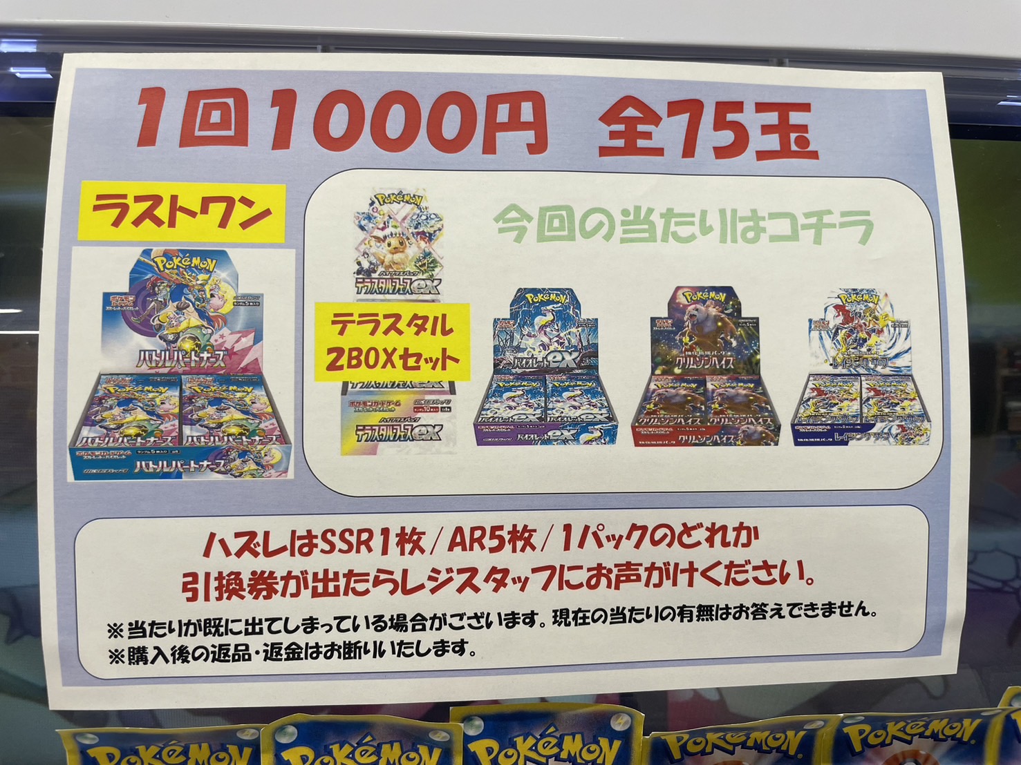 【四日市日永店】カード 新しいガチャ作成いたしました🔥 万代書店四日市日永店 四日市日永店 カード 四日市日永店 ガチャ 2025年2月15日 カード 新しいガチャ作成いたしました🔥 今回の大当たりはテラスタルフェス2BOXセット😍 是非挑戦してみてください‼️