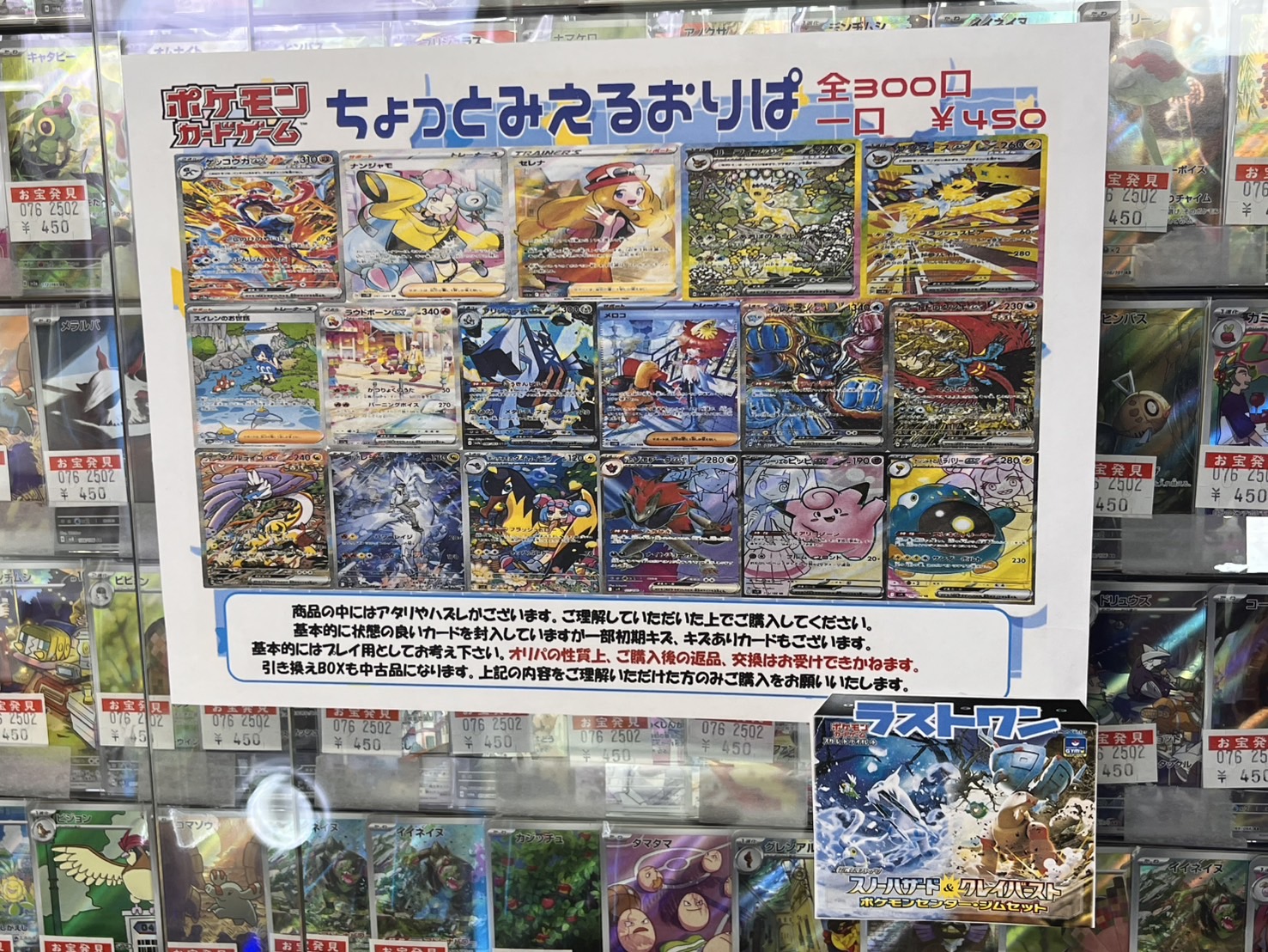 【アソベース豊川店】ポケモンカード ちゃっとみえるオリパ■ アソベース豊川店 豊川店 カード 豊川店 ガチャ 2025年2月21日 ★ポケモンカードちょっとみえるオリパ★ 1口450円 全300口発売✨️✨️ 是非挑戦してみて下さい👏👏 ※2025/2/21現在の価格となります。 在庫状況などによってお値段が変動いたします。予めご了承ください。