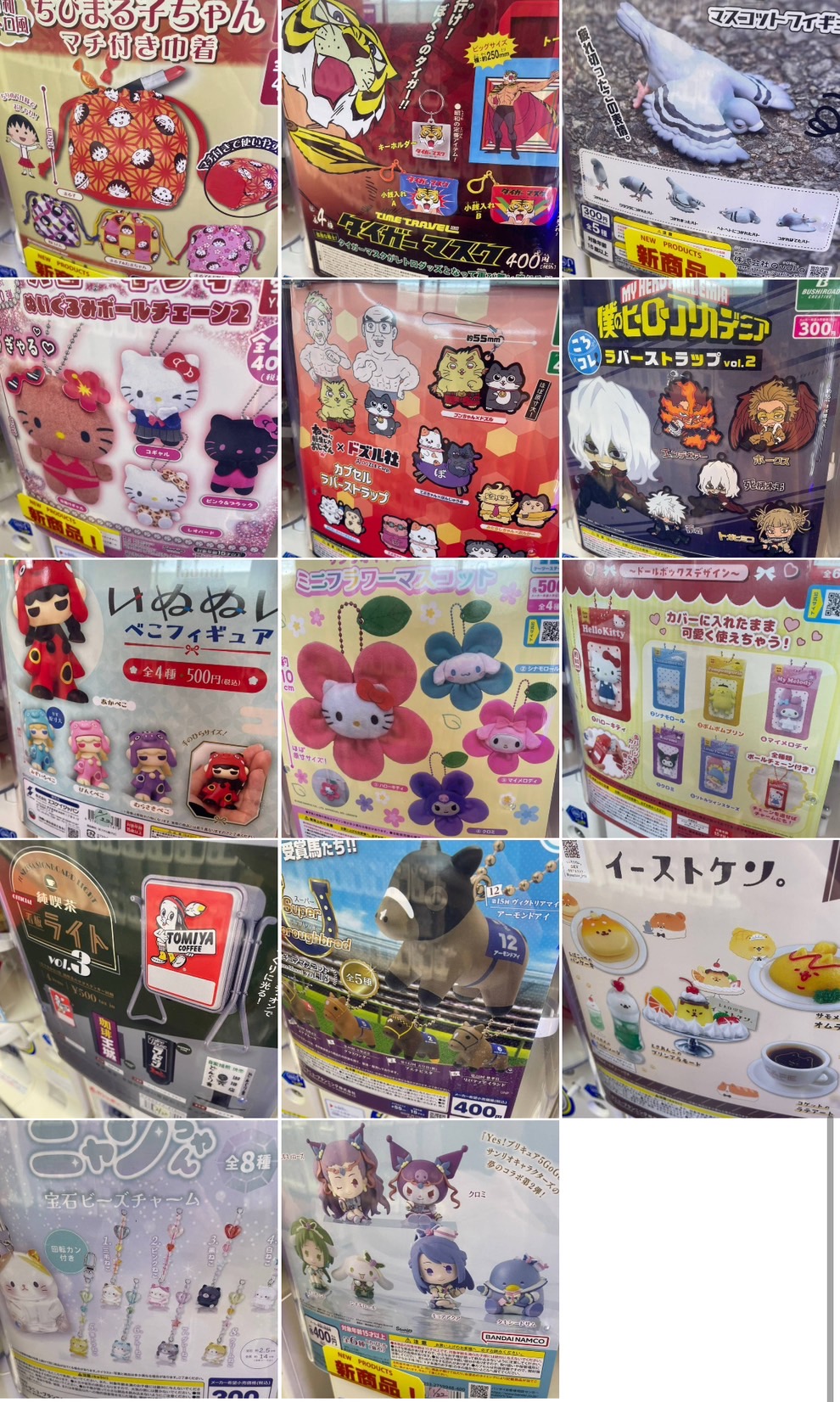 【四日市日永店】カプセルトイ情報③◆#ちびまる子ちゃん #タイガーマスク #つかれきったハト #猫に転生したおじさん #ドズル社 #僕のヒーローアカデミア #いぬぬい #べこ #サンリオキャラクター #看板ライト #スーパーサラブレッド #イーストケン #ニャンちゃん #プリキュア #万代書店四日市 #カプセルトイ #ガチャ■
