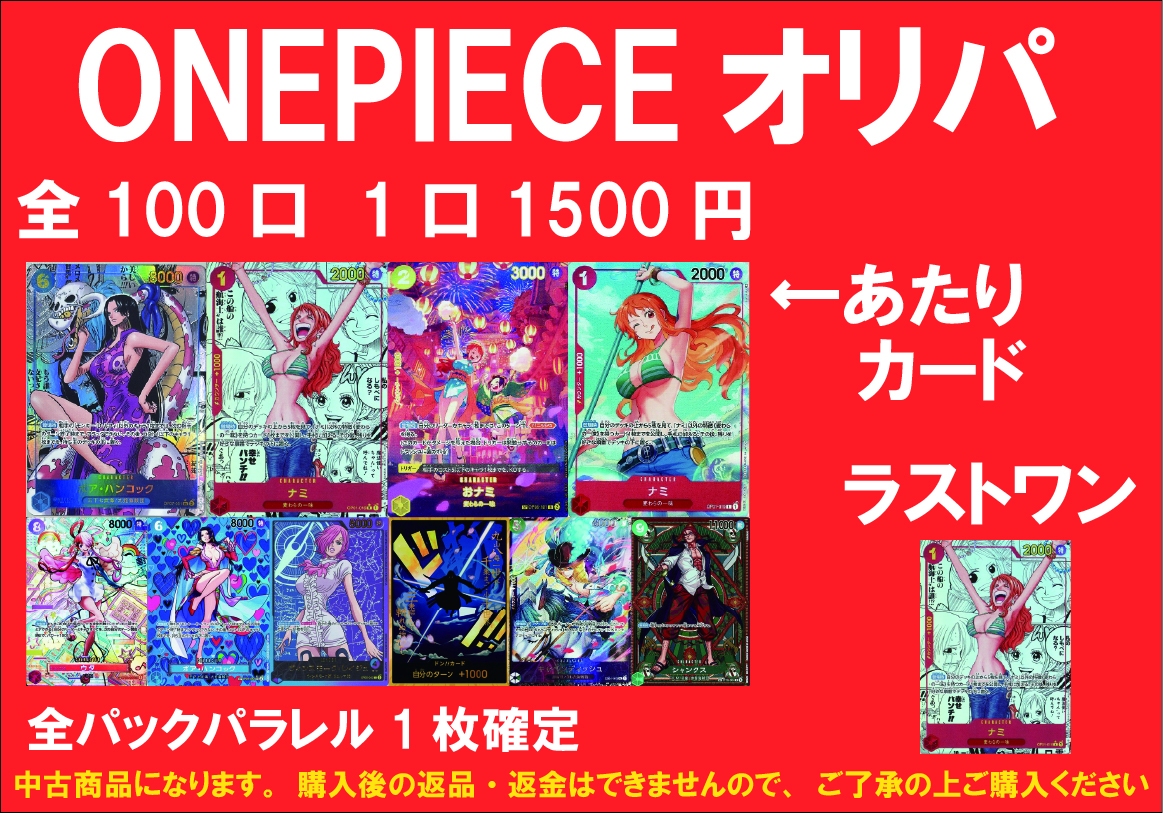 【アソベース豊川店】ワンピースオリパ■ new アソベース豊川店 豊川店 カード 2025年3月8日 カード 全100口 1回1500円 ワンピースオリパ発売✨️✨️ コミパラ ハンコック ナミ入ってます! ラストワンもナミ!豪華景品をご用意しました! 是非挑戦してみて下さい👏👏
