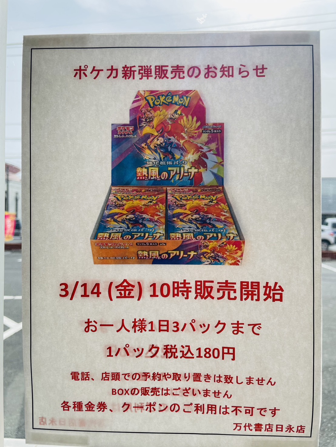 【四日市日永店】ポケモンカード新弾 熱風のアリーナ 本日10時より販売開始です!
