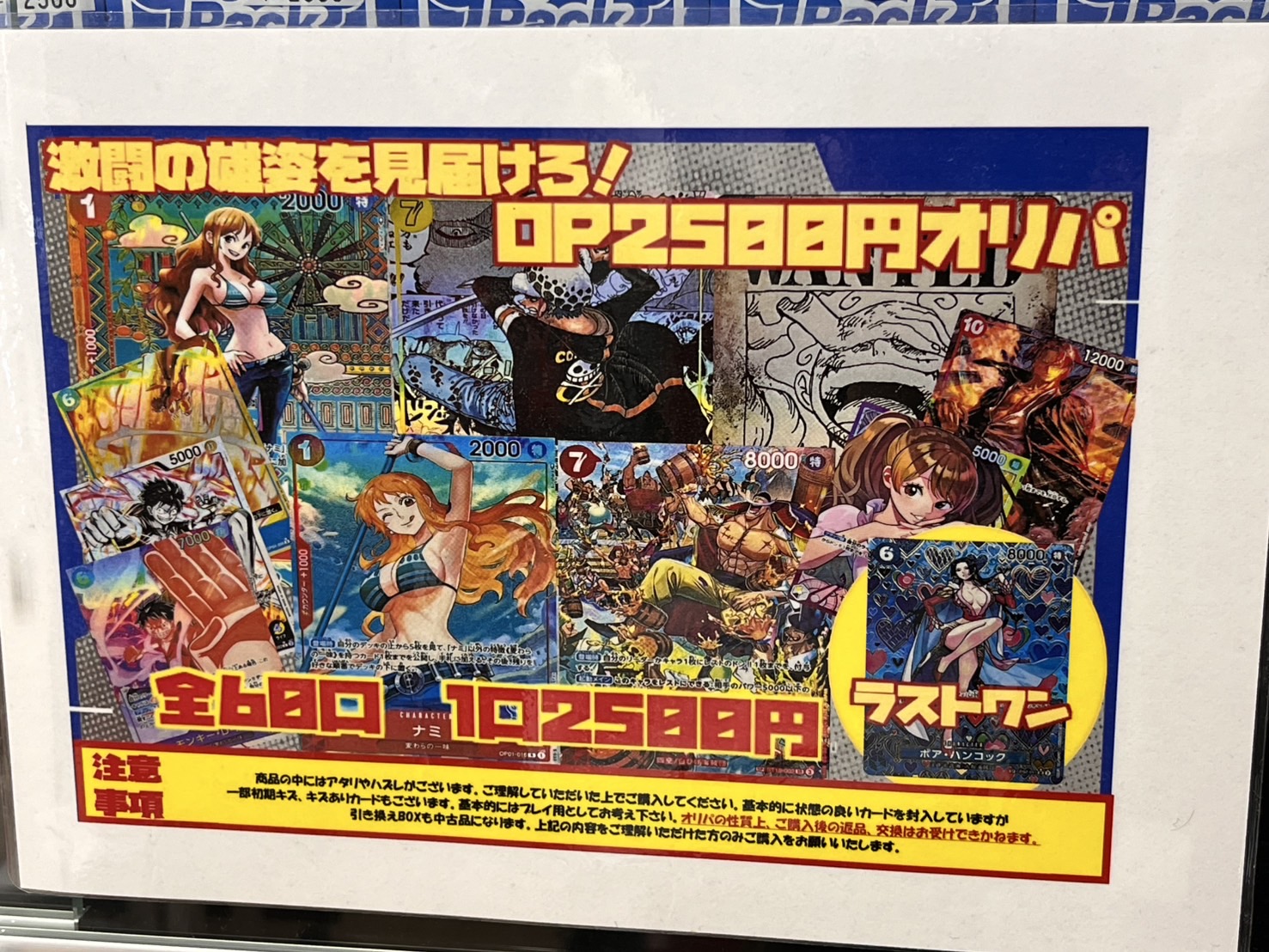 【アソベース豊川店】ワンピースカードゲーム 2500円オリパ アソベース豊川店 豊川店 カード 豊川店 ガチャ 2025年4月12日 カード ワンピースカードゲーム 1口2500円 全60口 オリパ発売!✨️✨️ 今回はコミパラ(ロー) など豪華シングルカードをご用意しました! 是非挑戦してみて下さい👏👏