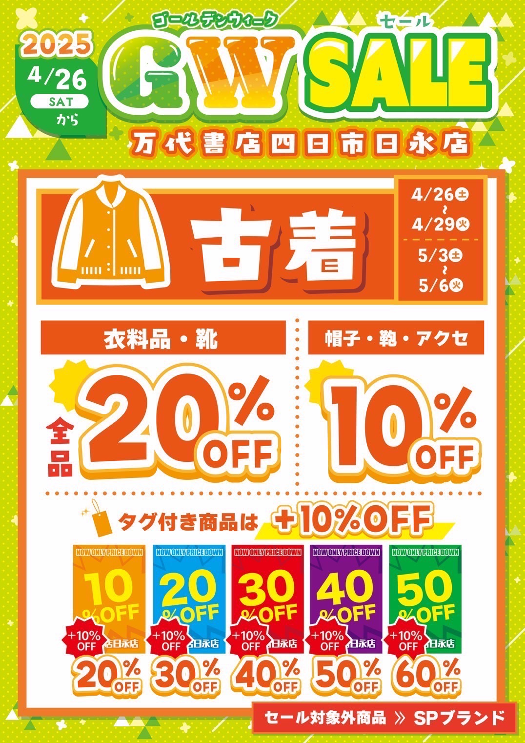 ★【四日市日永店】《4月26日~29日》GW 古着セール《5月3日~6日》★
