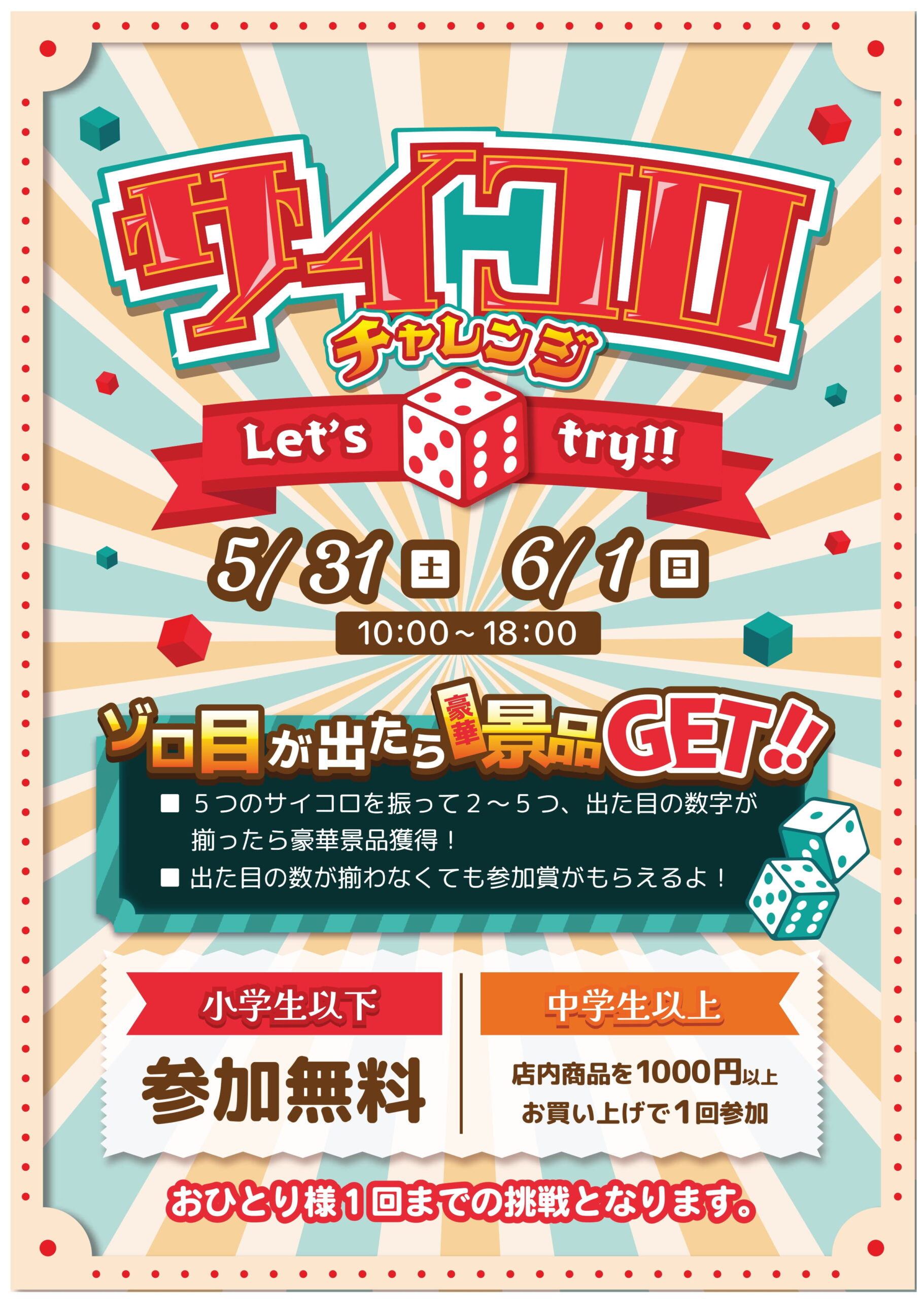 【鈴鹿店】《5月31日・6月1日》★サイコロチャレンジ★