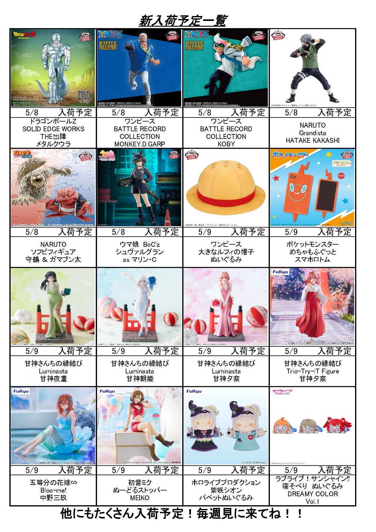 🎏鈴鹿アミューズの5月入荷景品になります📣🎏