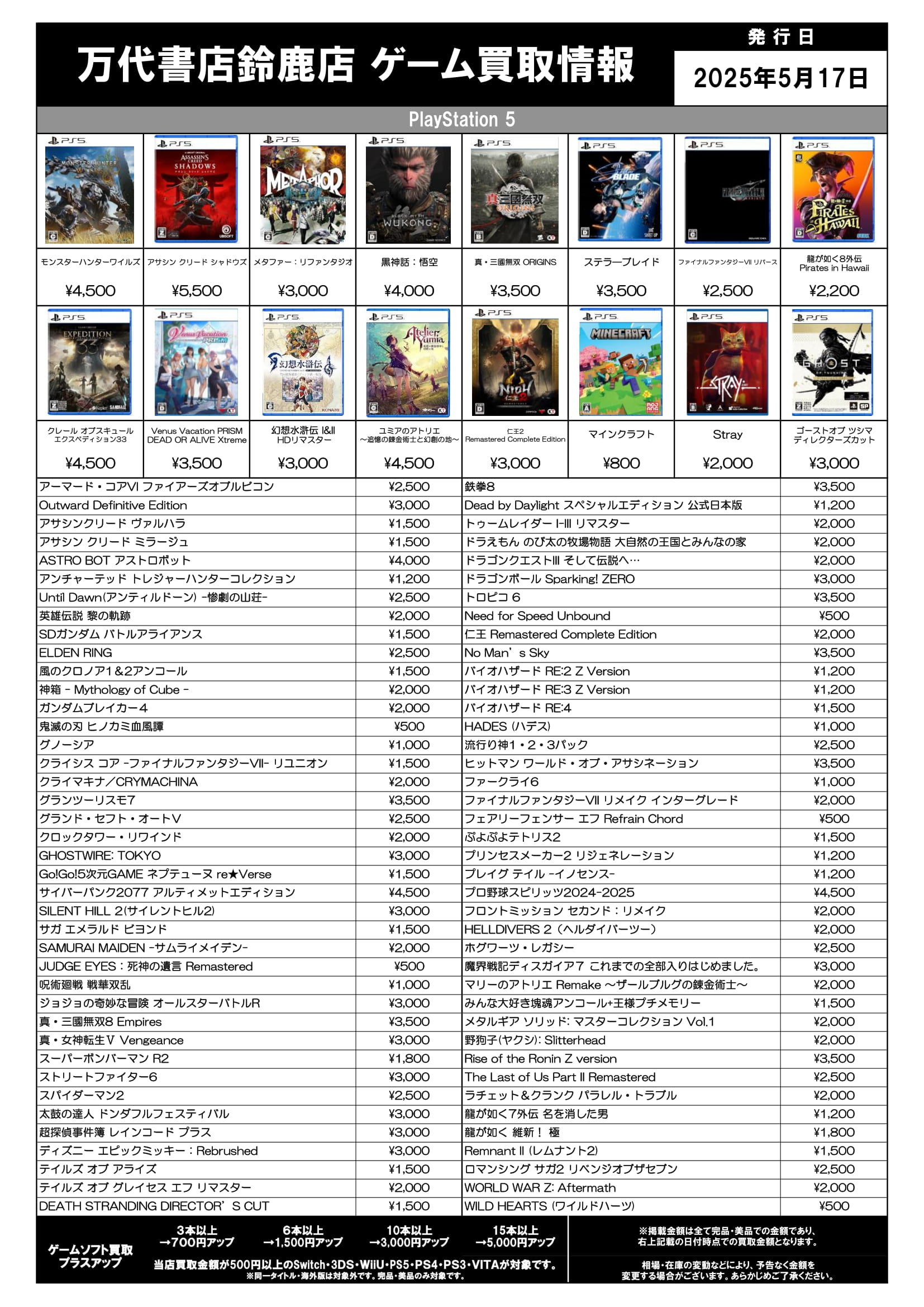 ゲーム買取情報を更新しました! 遊び終わったゲーム売ってください!!