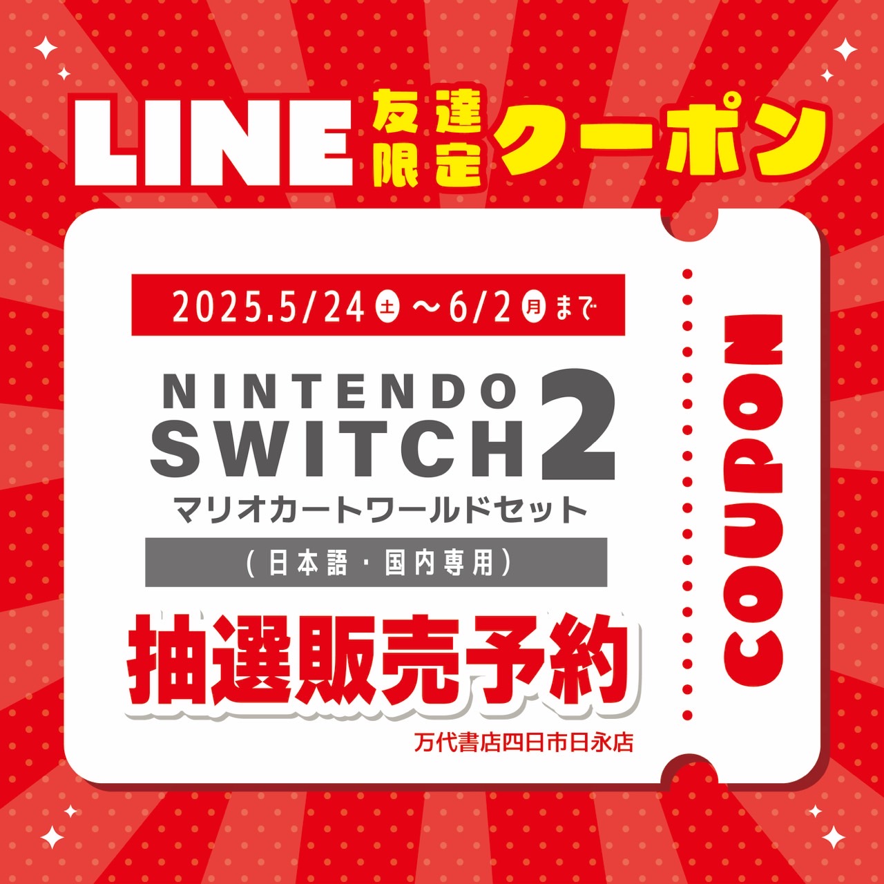 Nintendo Switch2本体の販売は事前抽選とさせていただきます。