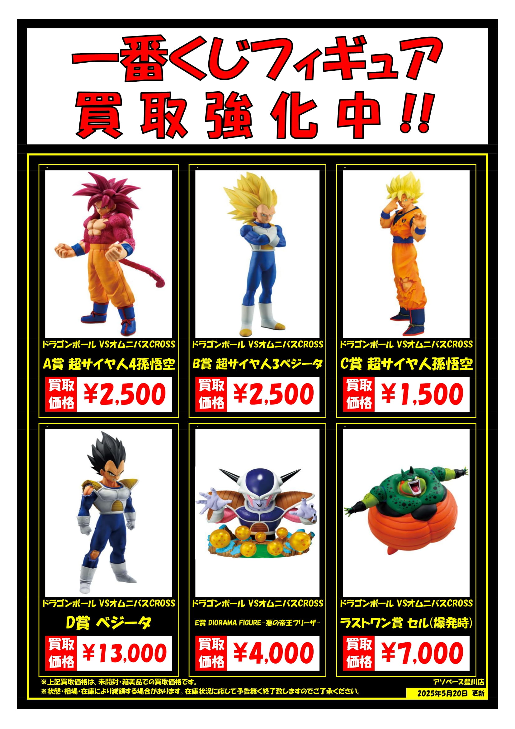 【アソベース豊川店】一番くじ買取告知!! アソベース豊川店 豊川店 買取情報 豊川店 おもちゃ 2025年5月20日 一番くじ ドラゴンボール VSオムニバスCROSS D賞 ベジータ ¥13,000 etc….. 超高額‼️買取告知です‼️‼️ 集まり次第終了致しますので、お早めにお持ち下さい!! おもちゃを売るのも買うのもアソベース豊川店で!🚀 ※2025/5/20現在の価格となります。 在庫状況・状態によってお値段が変動いたします。予めご了承ください。 **************** こちら↓もぜひチェックしてみてくださいね♪(*´▽`*) ・最新のイベント情報はこちら ・最新の買取情報はこちら