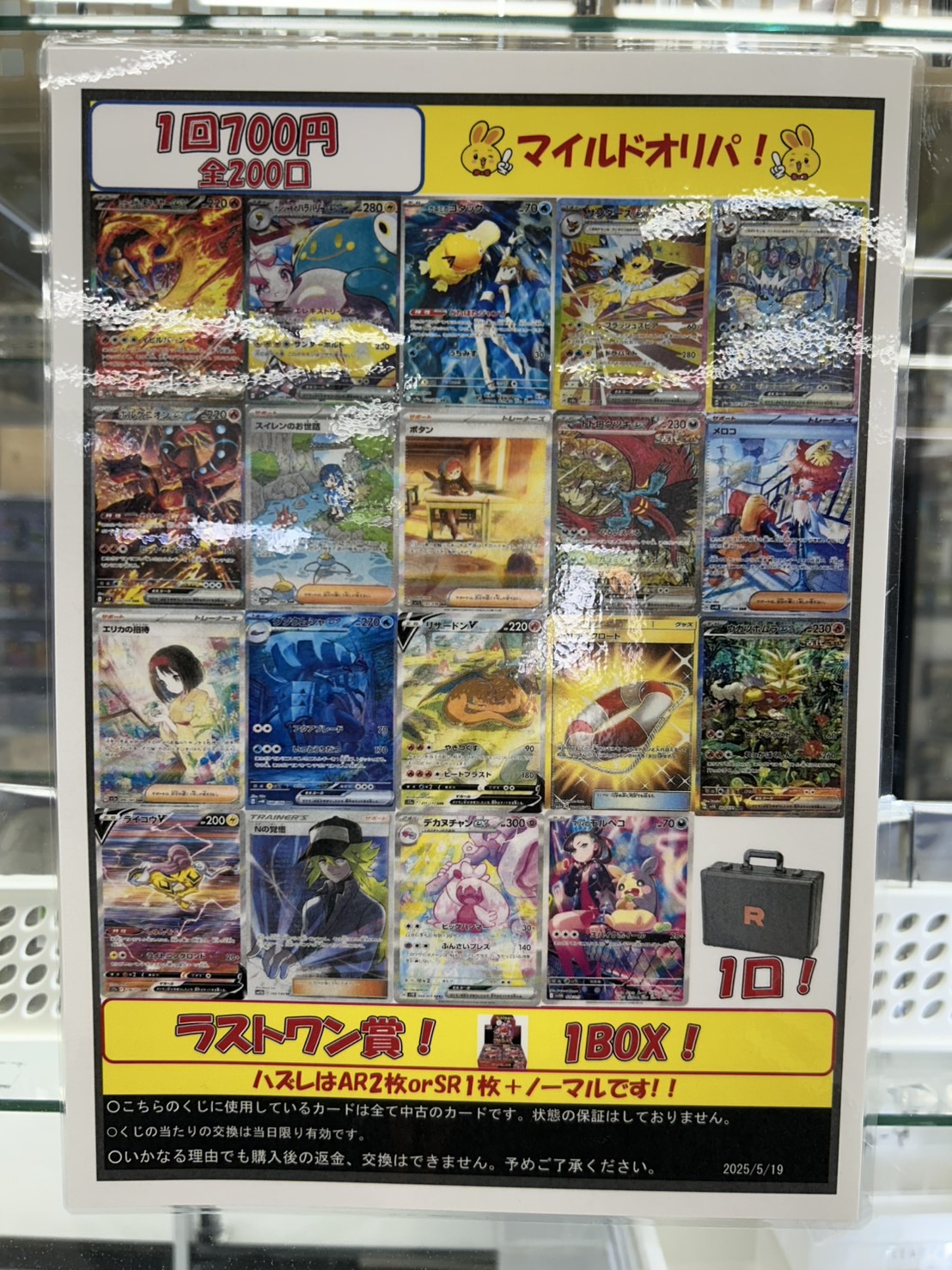 【鈴鹿店】マイルドオリパ発売中! 万代書店鈴鹿店 鈴鹿店 カード 2025年5月21日 カードコーナーより! マイルドオリパ発売中! 1回700円 全200口! ロケット団の栄光アタッシュケースやロケット団のファイヤーなど🤩 ハズレはAR2枚orSR1枚確定です! ラストワン賞はロケット団の栄光1BOXです!