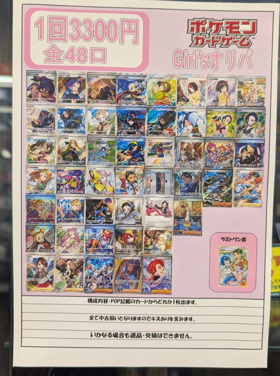 【四日市日永店】🩷一回3300円Girlsオリパ🩷 大人気Girlsオリパ、作成しました!