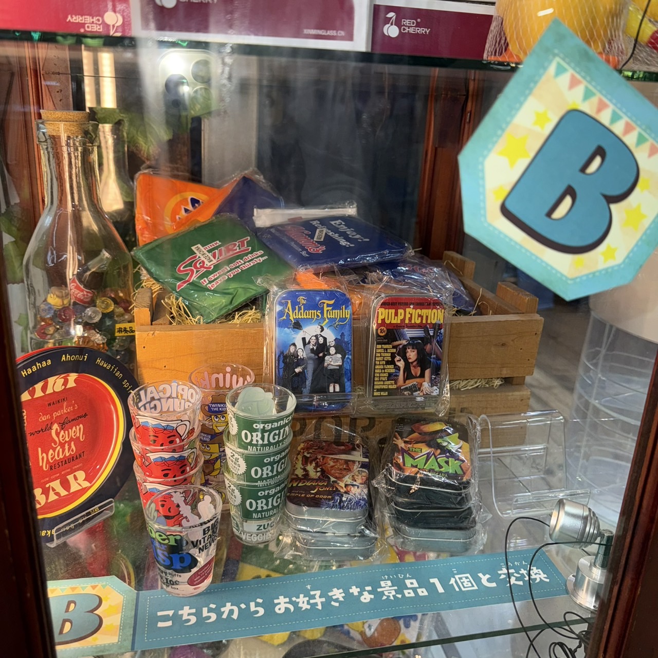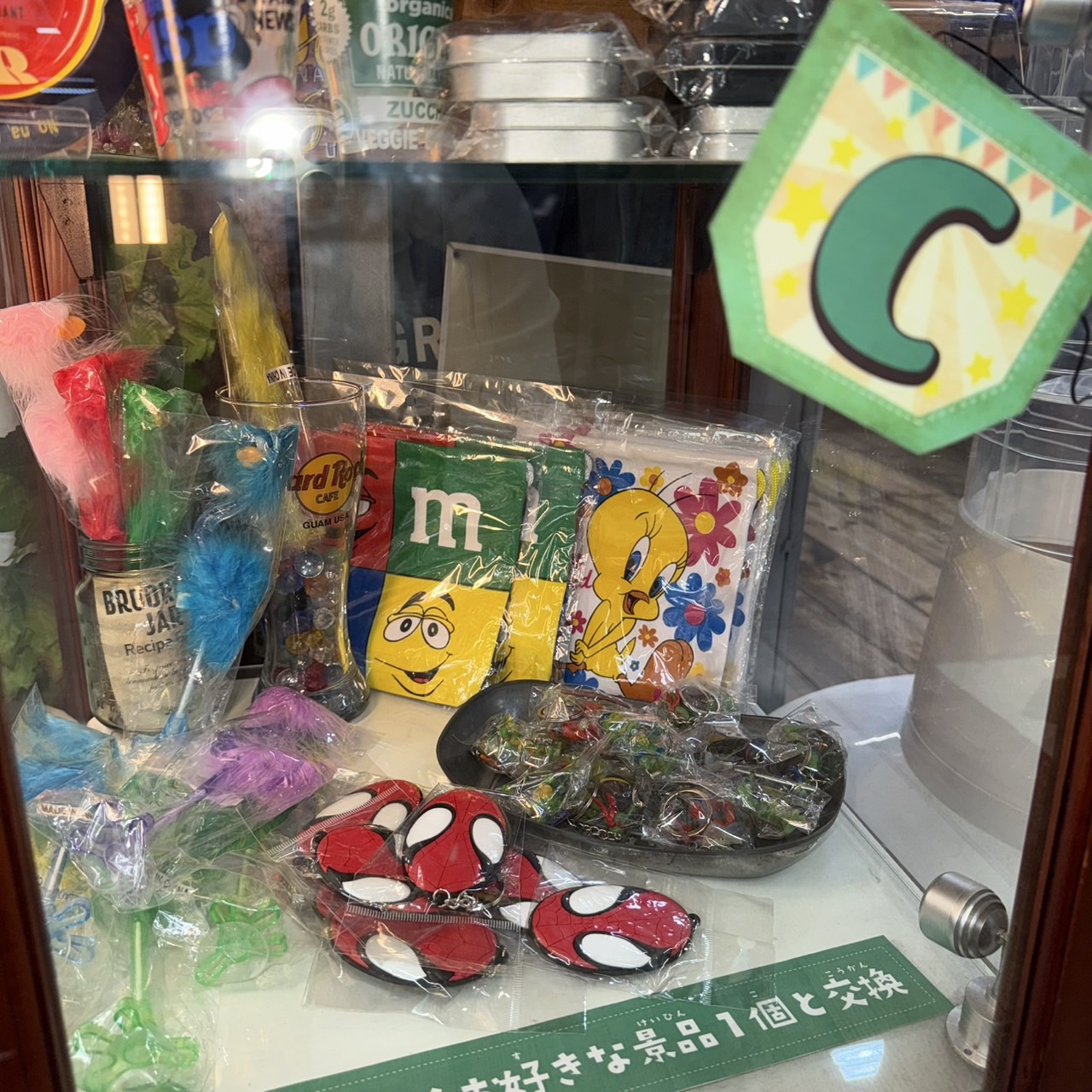 S、A、B、C賞が出たら左の棚の各景品と交換ができます(*^^*)