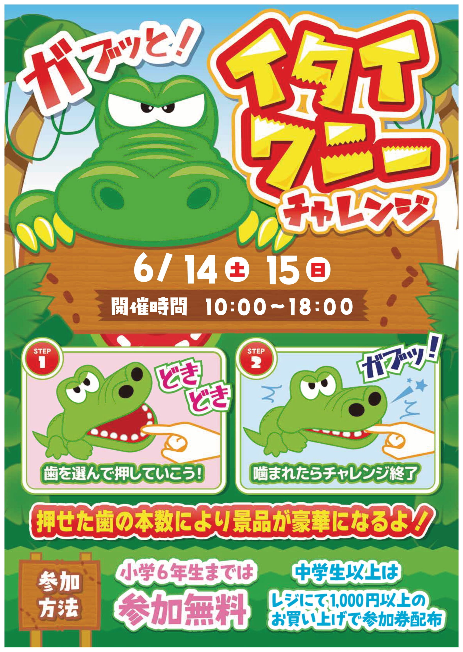 【鈴鹿店】《6月14日、15日》★イタイワニーチャレンジ開催します★