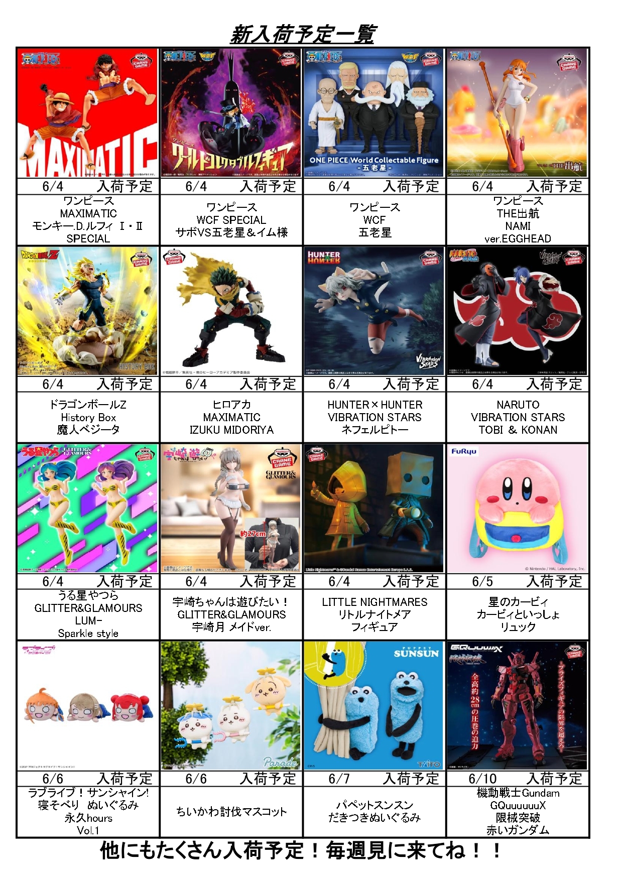 【鈴鹿店】アミューズ景品の6月入荷予定!■