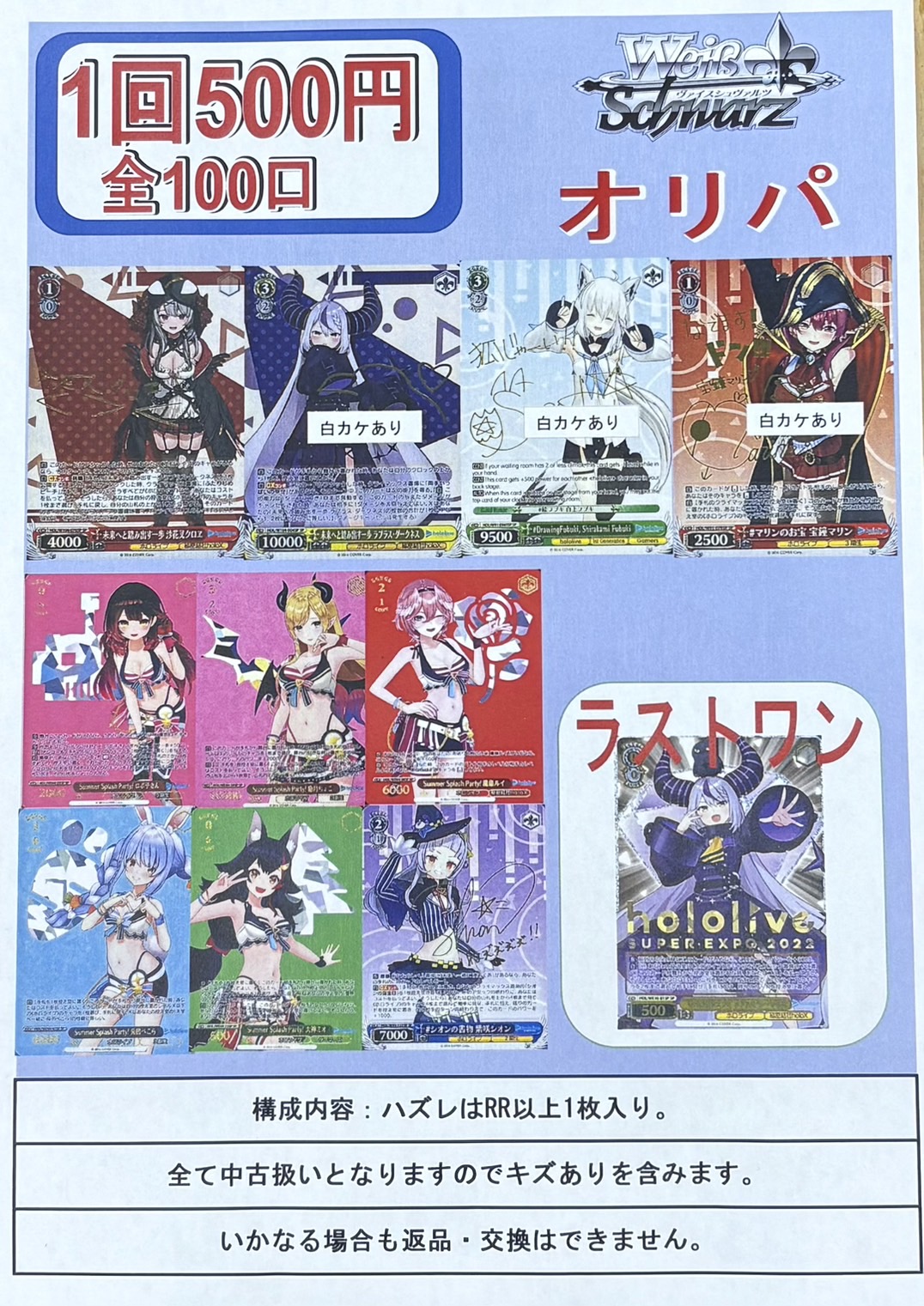 【四日市日永店】ヴァイスオリパ 🩵1回500円全100口🩵 新しくオリパを作成しました✨️ 万代書店四日市日永店 四日市日永店 カード 2025年6月10日 カード ヴァイスオリパ 🩵1回500円全100口🩵 新しくオリパを作成しました✨️ お目当てのカードが手に入るかも?? ぜひ挑戦してみてください🔥🔥