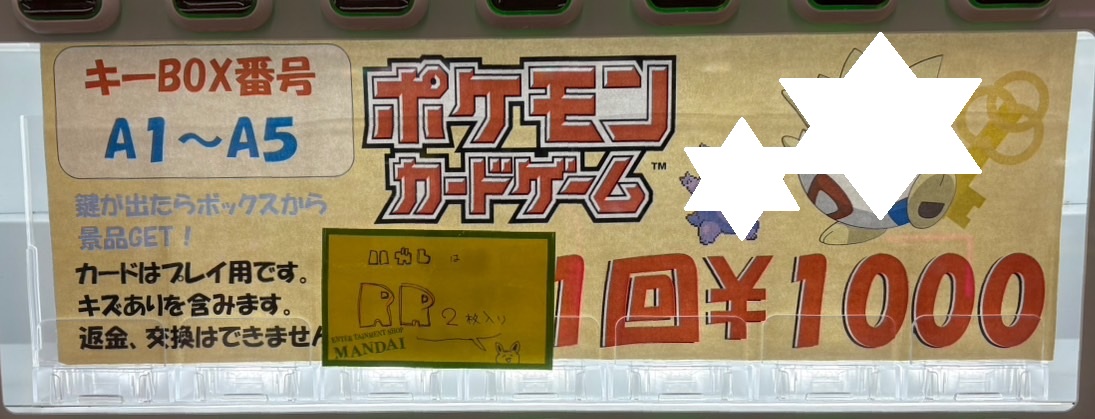 1回1000円🔑ポケモンカードキーBOXガチャ🔑売り切れたので補充しました❕