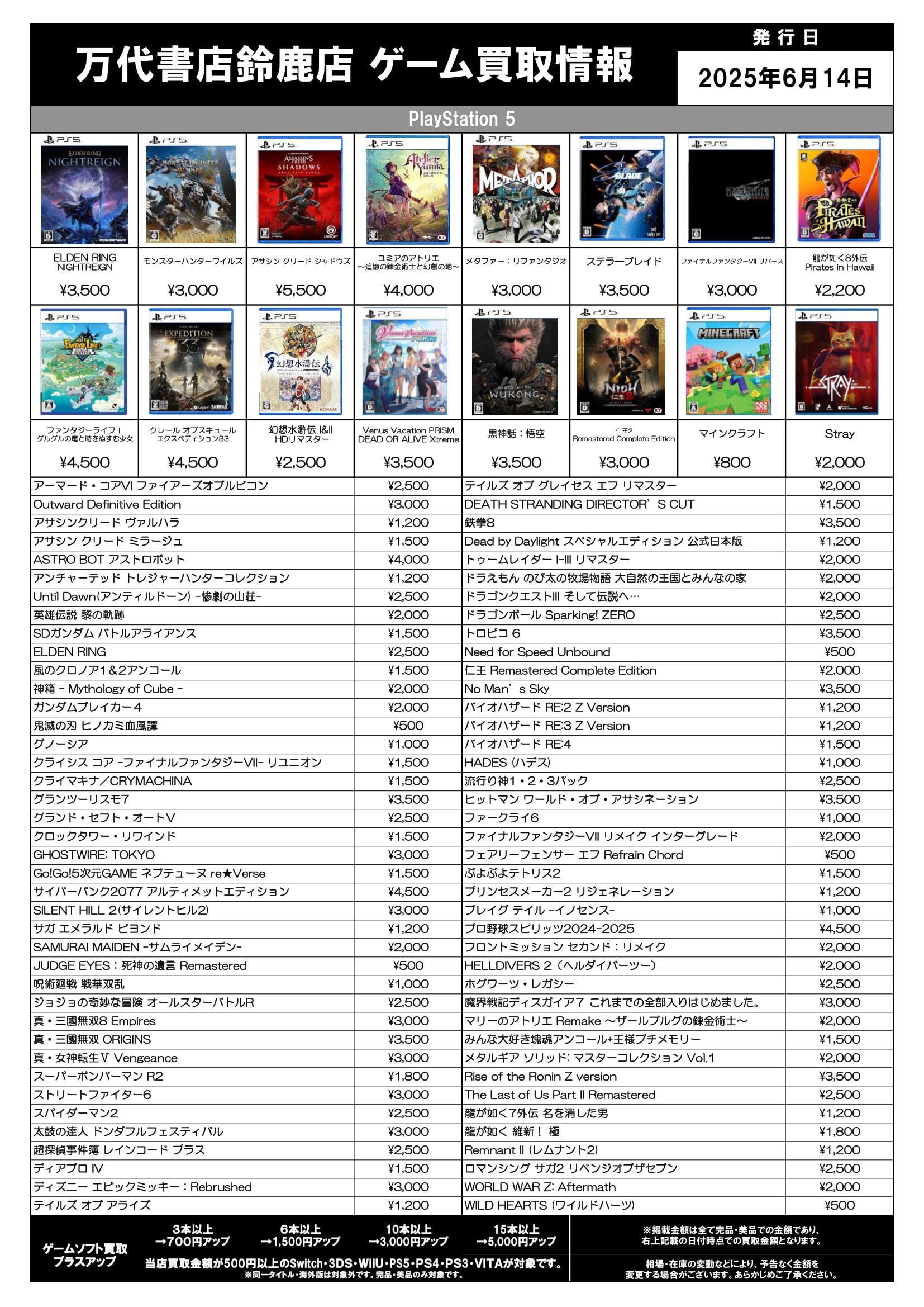 【鈴鹿店】★ゲーム買取情報0614★ new 万代書店鈴鹿店 鈴鹿店 買取情報 鈴鹿店 ゲーム 2025年6月14日 ゲーム買取情報を更新しました! 遊び終わったゲーム売ってください!! ※2025/6/14現在の価格となります。 在庫状況・状態によってお値段が変動いたします。予めご了承ください。 **************** こちら↓もぜひチェックしてみてくださいね♪(*´▽`*) ・最新のイベント情報はこちら ・最新の買取情報はこちら