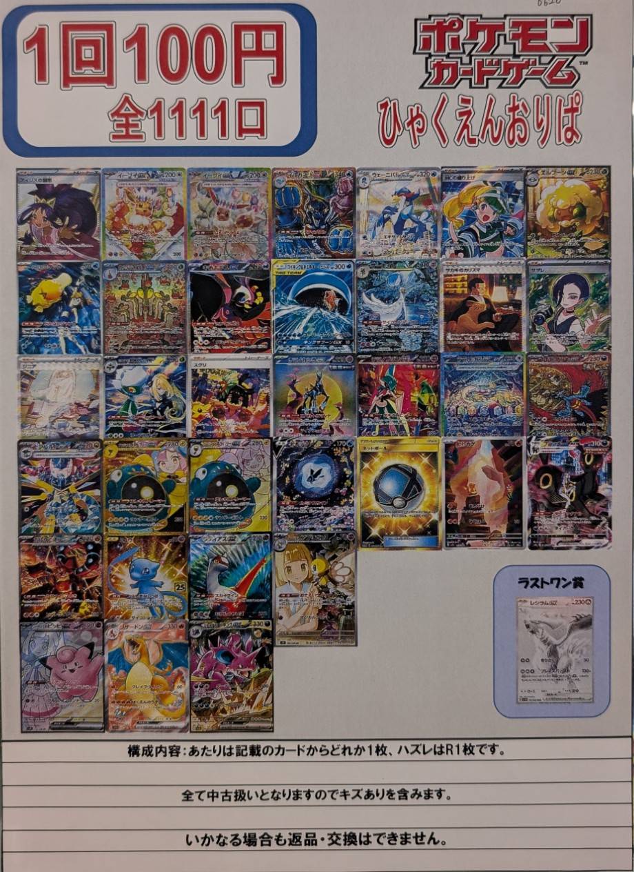 【四日市日永店】1111くち、ひゃくえんおりぱ😎 万代書店四日市日永店 四日市日永店 カード 2025年6月20日 カード 1111くち、ひゃくえんおりぱ😎 みんなだいすきひゃくえんおりぱ、うりきれたのであたらしいのつくりました💪💪 一口ひゃくえんであそべちゃう🥰 カードのX(Twitter)フォローで毎日2くちまでひける無料オリパも好評実施中ですので、 無料オリパひいてついでに引いてきませんか?☺️☺️