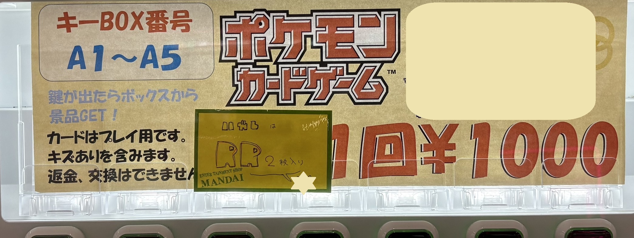 【四日市日永店】1回1000円 ポケモンカードキーBOXガチャ 補充しました! 万代書店四日市日永店 四日市日永店 カード 四日市日永店 ガチャ 2025年6月30日 カード 1回1000円 🔑ポケモンカードキーBOXガチャ🔑 売り切れたので補充しました❕ 今回の当たりの一部こちらです✨️✨️ 是非挑戦してみてください🙌🙌