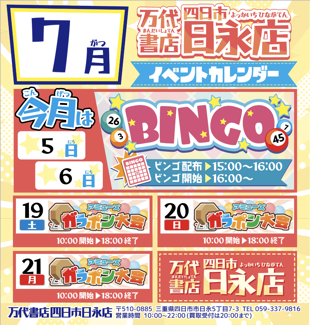 【四日市日永店】🌟7月のイベントカレンダー🌟
