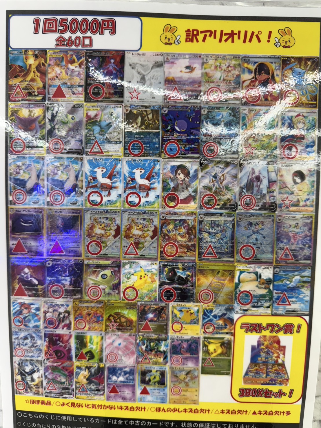 【鈴鹿店】カードコーナーより! 訳ありオリパ発売中! 万代書店鈴鹿店 鈴鹿店 カード 2025年7月11日 カードコーナーより! 訳ありオリパ発売中! 1回5000円 全60口 リザードンEX SR やリザードン&テールナーGX SR当たります! ラストワン賞は熱風のアリーナ3BOXセットです!