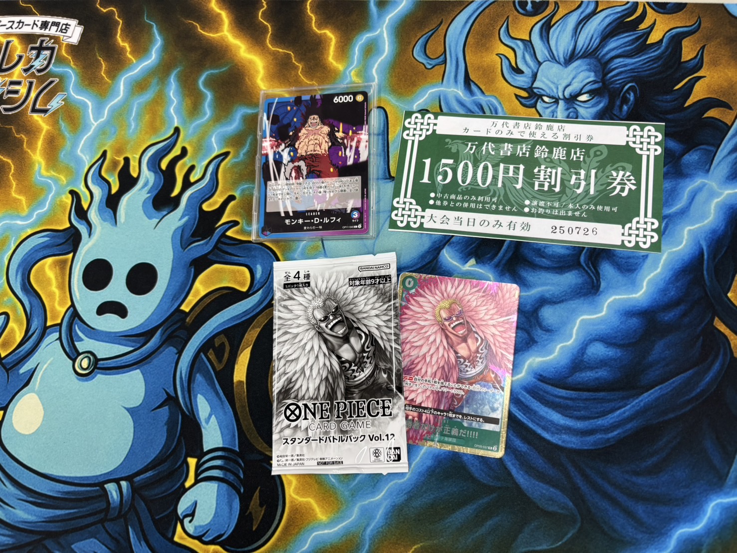 【鈴鹿店】ワンピースカードゲーム大会結果報告! 万代書店鈴鹿店 鈴鹿店 イベント情報 鈴鹿店 カード 2025年7月26日 ワンピースカードゲーム大会結果報告! 本日のワンピースカードゲームスタンダードバトルは11名の方に参加していただきました! 優勝は カトウ さん 青紫ルフィ トレカマクシムよろしくお願いします!。 優勝おめでとうございます♪ 次回は8/2(土)の開催です。