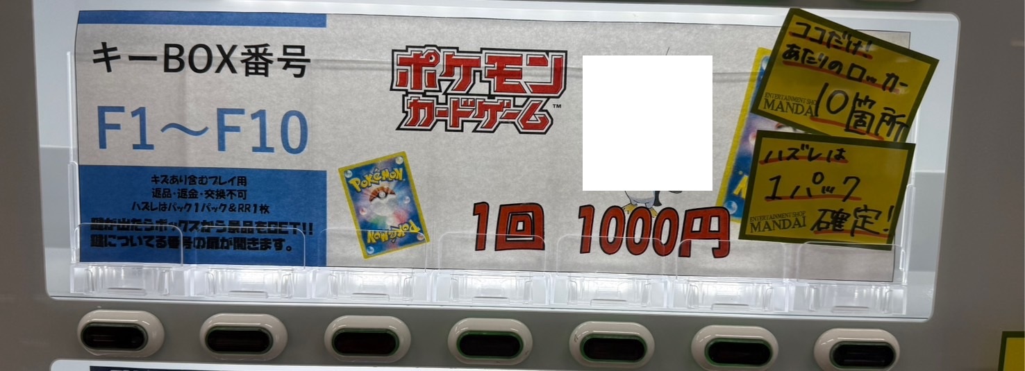 【アソベース豊川店】💙ポケカ¥1000自販機💙 補充いたしました✨ アソベース豊川店 豊川店 カード 豊川店 ガチャ 2025年8月13日 💙ポケカ¥1000自販機💙 前回のが売り切れたため、補充いたしました‼️✨ こちらのロッカーは10箇所ロッカーのあるタイプになります‼️ ハズレは未開封パックとRR1枚になります🥳