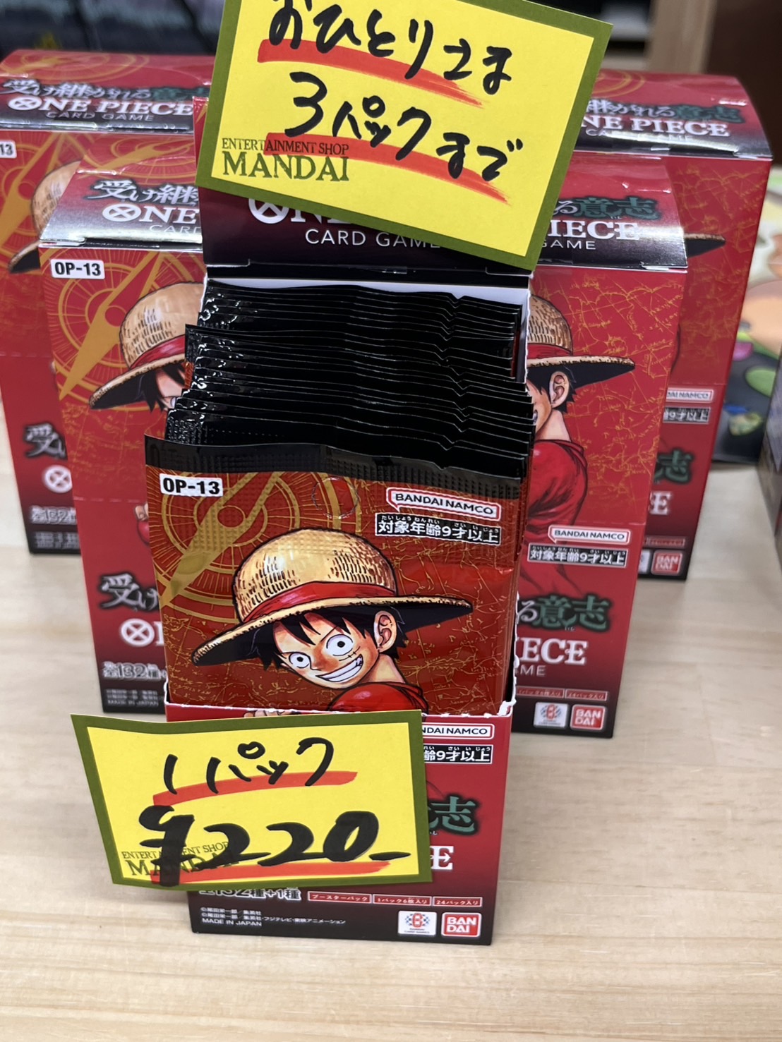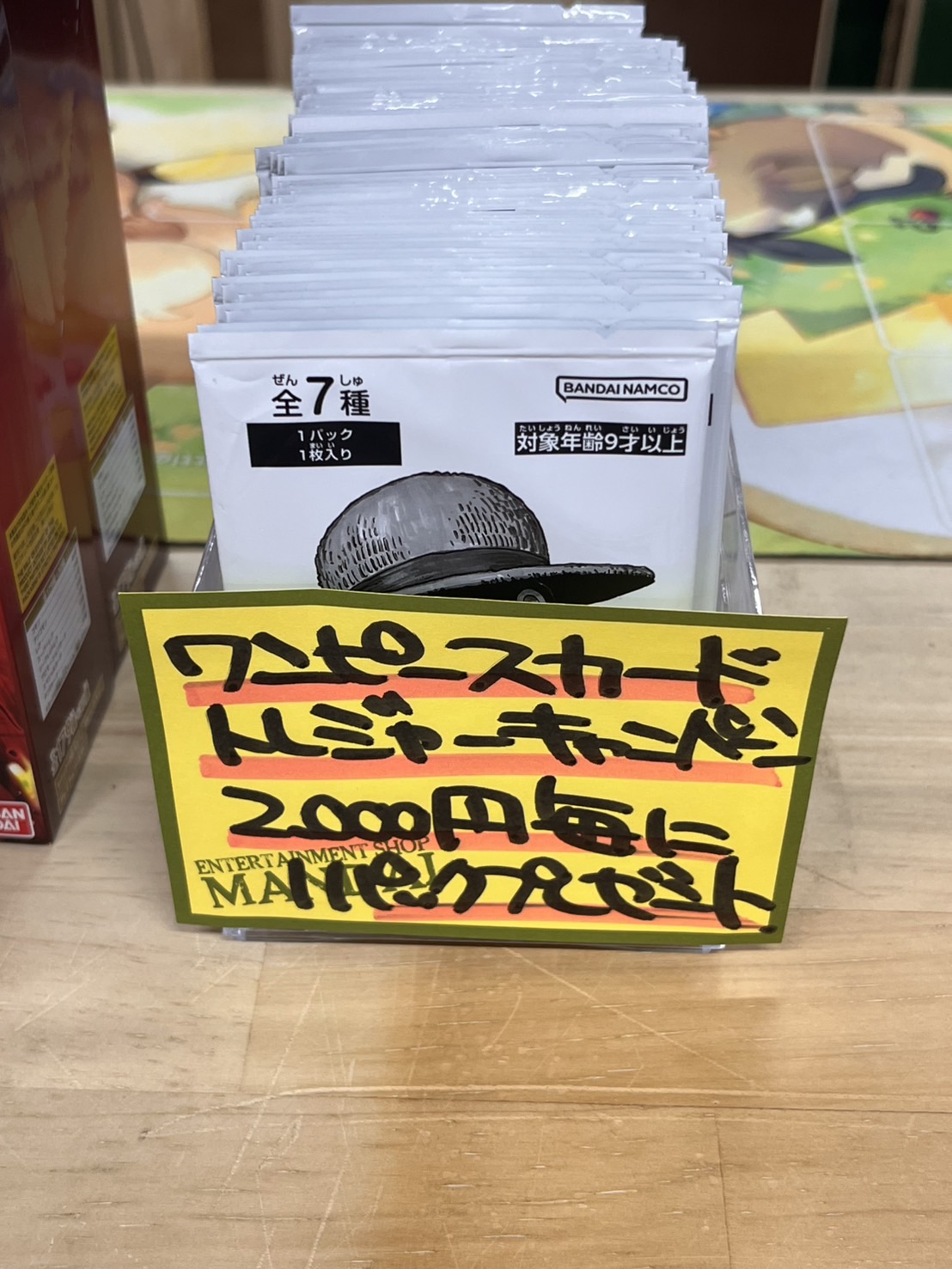 ワンピースパック購入2000円毎に1パックプレゼントキャンペーン実施中!