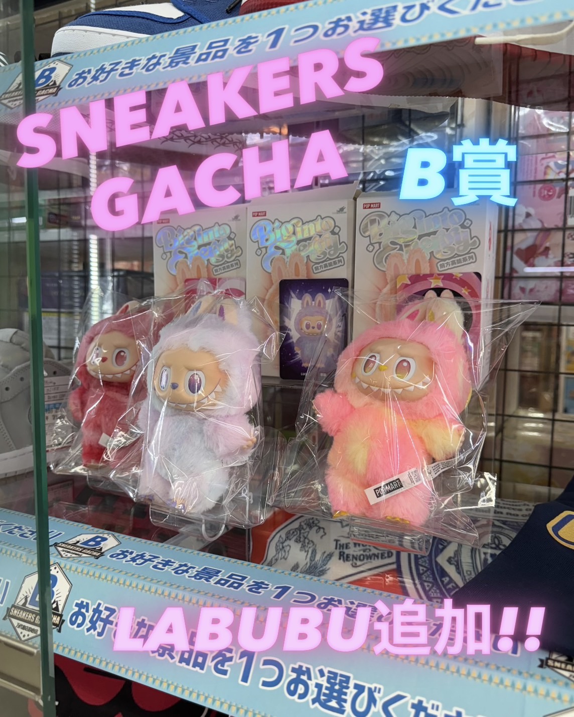 【鈴鹿店】スニーカーガチャに大人気ラブブ追加🧸‼️💙 万代書店鈴鹿店 鈴鹿店 ガチャ 2025年8月26日 1PLAY ¥1,000で遊べるスニーカーガチャに大人気ラブブ追加🧸‼️💙 B賞景品としてショーケース内にいます💘 入手困難な為少量しかございませんので 早い者勝ちです!✨️ Z賞のランクアップ16枚でゲットもできます💙‼️ ぜひ回してみてねー✨️✨️✨️ ⚠️LABUBUは開封済の未使用品です。店頭での販売はしておりません。ガチャでゲットするのみです🙇♂️ご了承ください。 券は当日に限り有効です。 返金、景品の選び直しはできません。