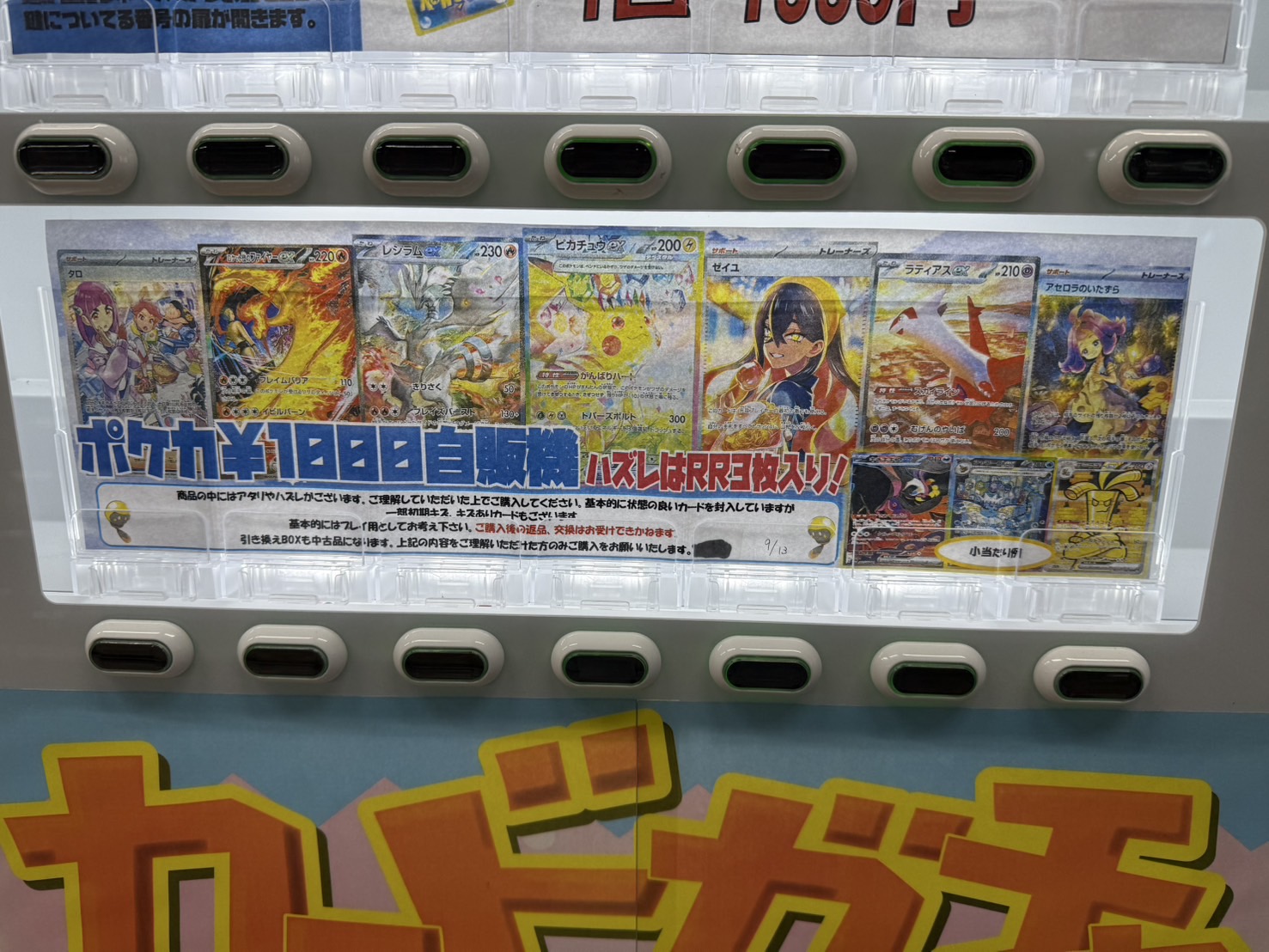 【アソベース豊川店】💙ポケカ自販機¥1000💙 売り切れたため新しく展開いたしました‼️ アソベース豊川店 豊川店 カード 豊川店 ガチャ 2025年9月13日 💙ポケカ自販機¥1000💙 売り切れたため新しく展開いたしました‼️ 大当たりはピカチュウex SARです✨ 気になる方は是非店頭まで🏃♀️