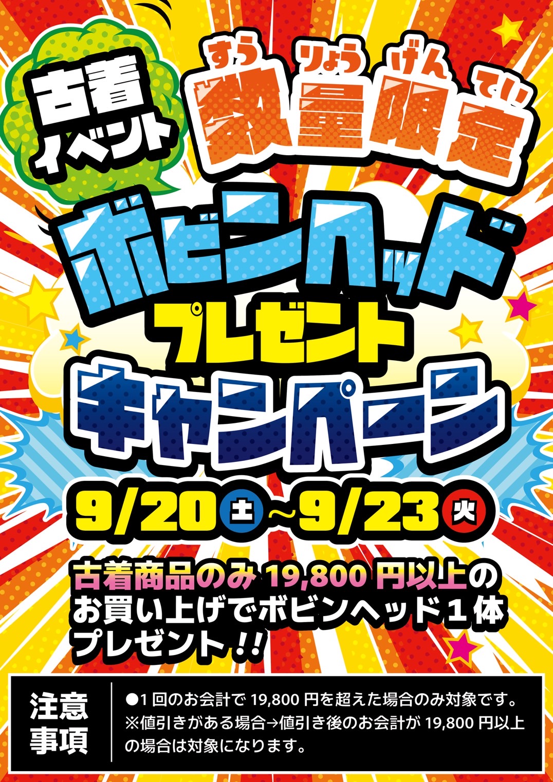 【四日市日永店】🤖9/20(土)〜9/23(火)🤖 数量限定‼️ボビンヘッドプレゼントキャンペーン✨(☝︎ ՞ਊ ՞)☝︎♪ 四日市日永店 買取情報 四日市日永店 イベント情報 四日市日永店 ファッション 2025年9月19日 万代書店四日市日永店です(☝︎ ՞ਊ ՞)☝︎ 🤖9/20(土)〜9/23(火)🤖 数量限定‼️ボビンヘッドプレゼントキャンペーン✨(☝︎ ՞ਊ ՞)☝︎♪ 当店古着商品を¥19,800以上お買い上げで ボビンヘッドを、、 ✨1体プレゼント‼️✨ ボビンヘッドの数には限りがありますのでお早めに👀 その他注意事項等は画像の方で確認お願いします🙇 ぜひ、万代書店四日市日永店に お越しくださいませッッ(☝︎ ՞ਊ ՞)☝︎✨