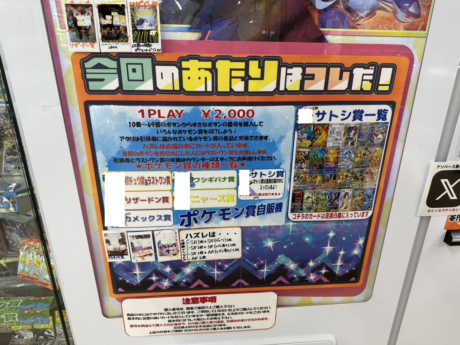 【アソベース豊川店】✨️🆕ポケモン賞自販機🆕✨️ 前回ラストワンまででたため、補充いたしました‼️ アソベース豊川店 豊川店 カード 豊川店 ガチャ 2025年9月20日 ✨️🆕ポケモン賞自販機🆕✨️ 前回ラストワンまででたため、補充いたしました‼️ 景品も補充致しましたので気になる方は店頭まで🏃♀️ 1回2000円になります‼️ ぜひ1回でも挑戦してみて下さい💚 ハズレは 🌟SR1枚 レギュ落ちSR1枚 🌟AR2枚 🌟SR1枚 レギュ落ちAR1枚 🌟SR1枚 SRグッツ1枚 のどれかの組み合わせになります✨️