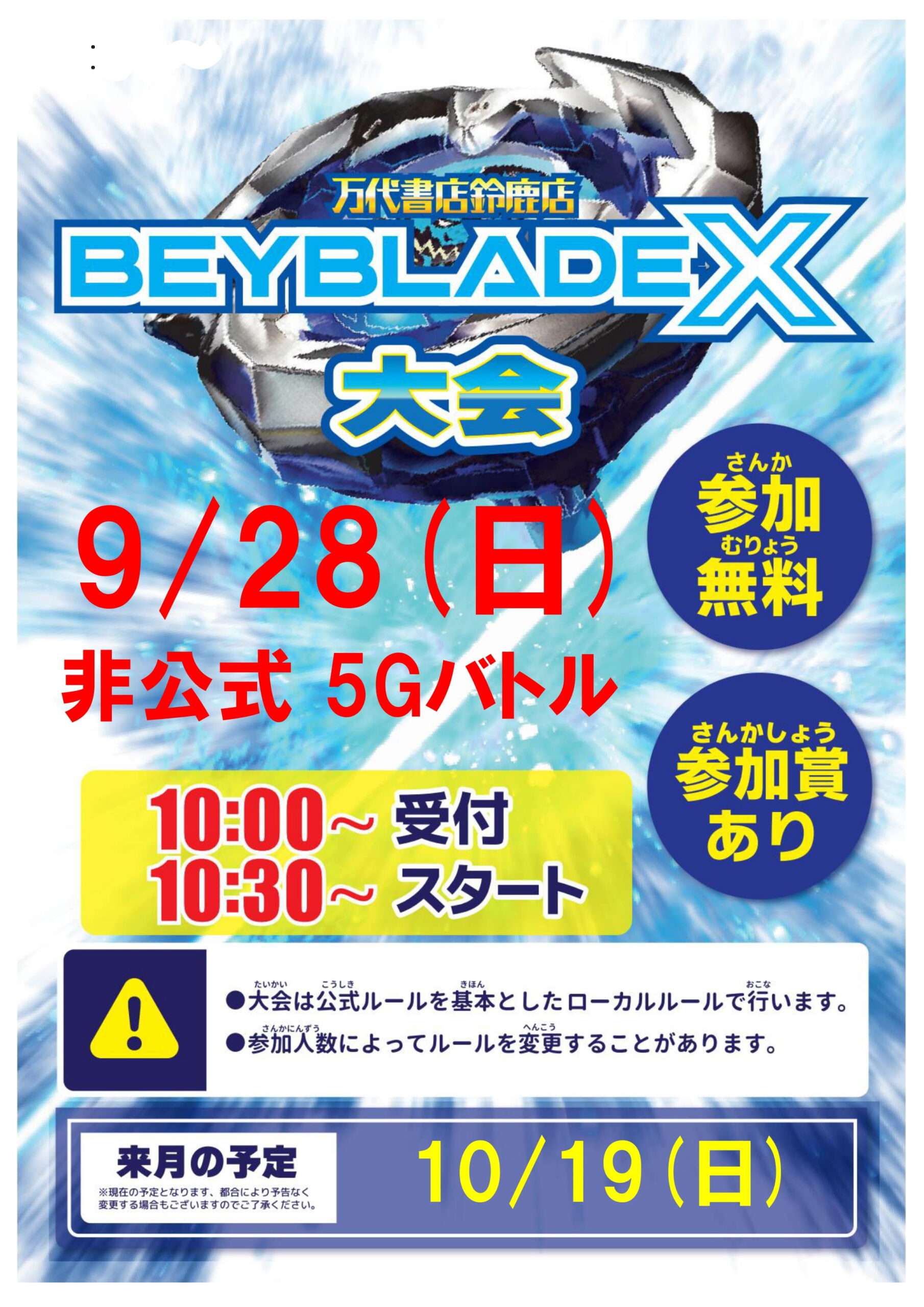 明日9/28はベイブレードX非公式大会の開催日です!